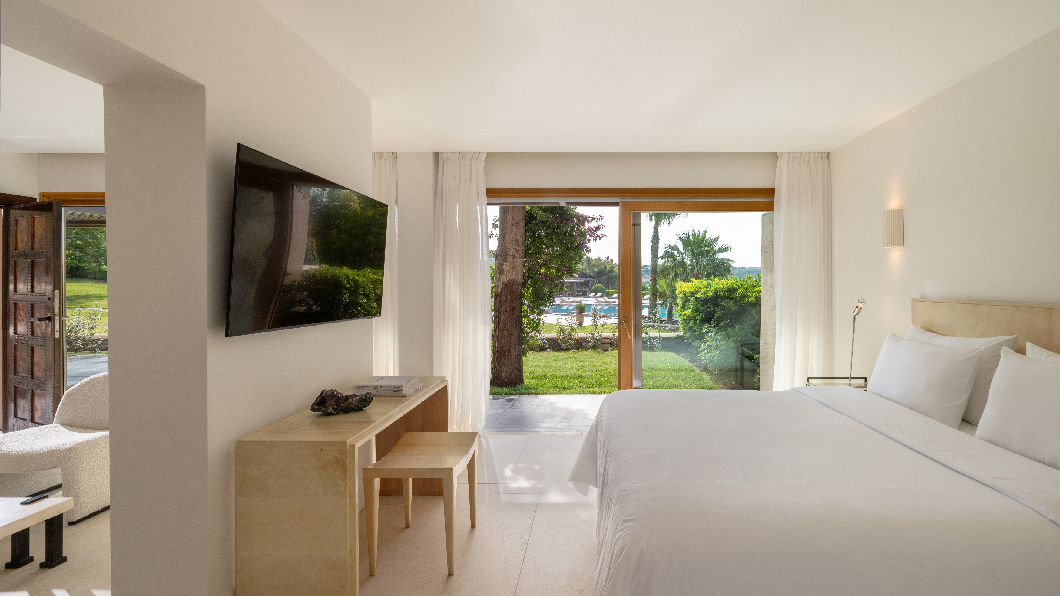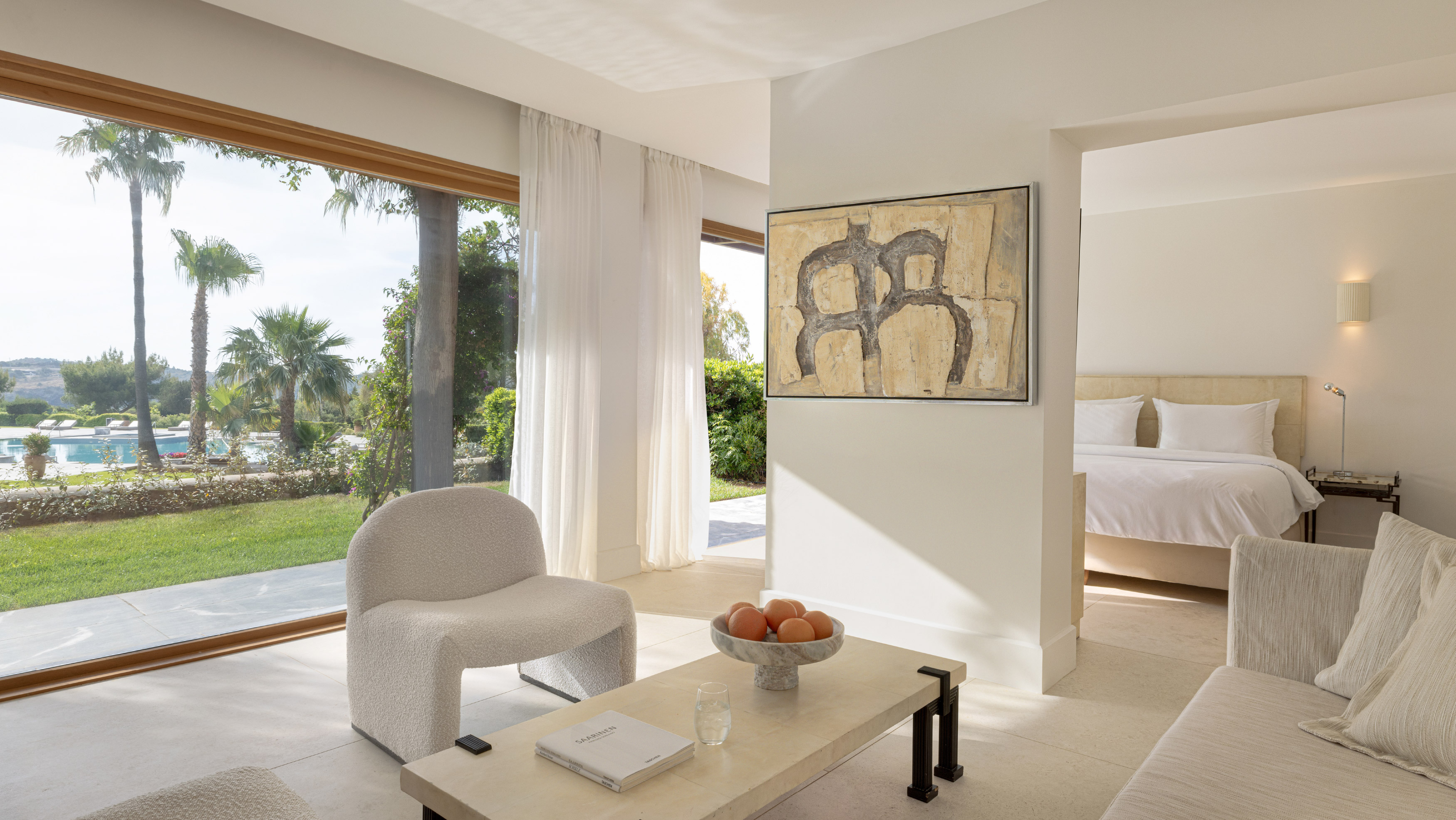 Discerning travellers will appreciate the discreet luxury of these superior accommodations. Individually decorated with handcrafted furniture and custom-loomed fabrics, the style combines the stark yet stunning beauty of Cape Sounio with state-of-the-art conveniences.