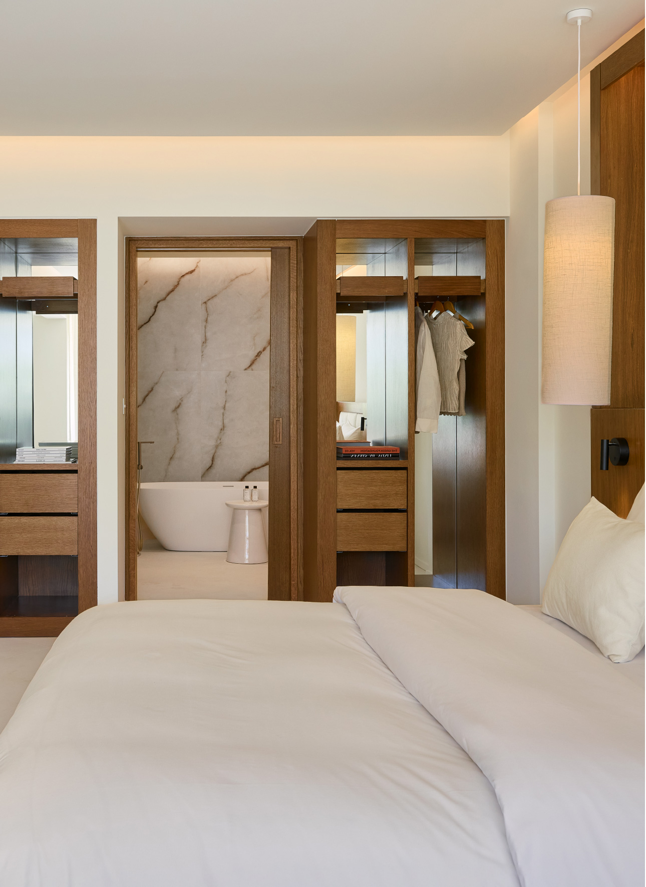 Amirandes is a Resort to Live. There is a fabulous collection of rooms, suites and villas carrying a sense of belonging and distinctive character. The architecture is timeless based on the elements of Cretan land. The design is contemporary and thoughtful at once with a patina of understatement. You will find privacy, a cool aura, soft details and a deluxe set of all kinds of amenities.