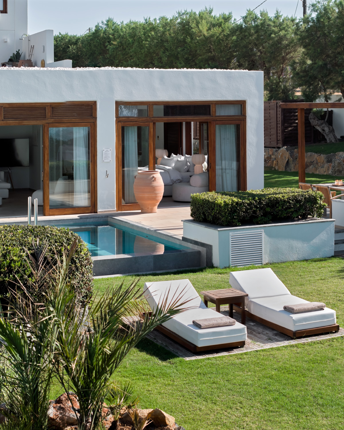 The ultimate accommodation in Grecotel Amirandes! A unique architectural idea for those wishing discrete luxury and comfort. It consists of two areas, separated by a stone-laid private path and it is located in the first row of the village in front of the beach.