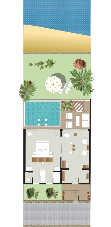 These spacious and comfortable villas consist of one sea view master bedroom and a stylish living room.
