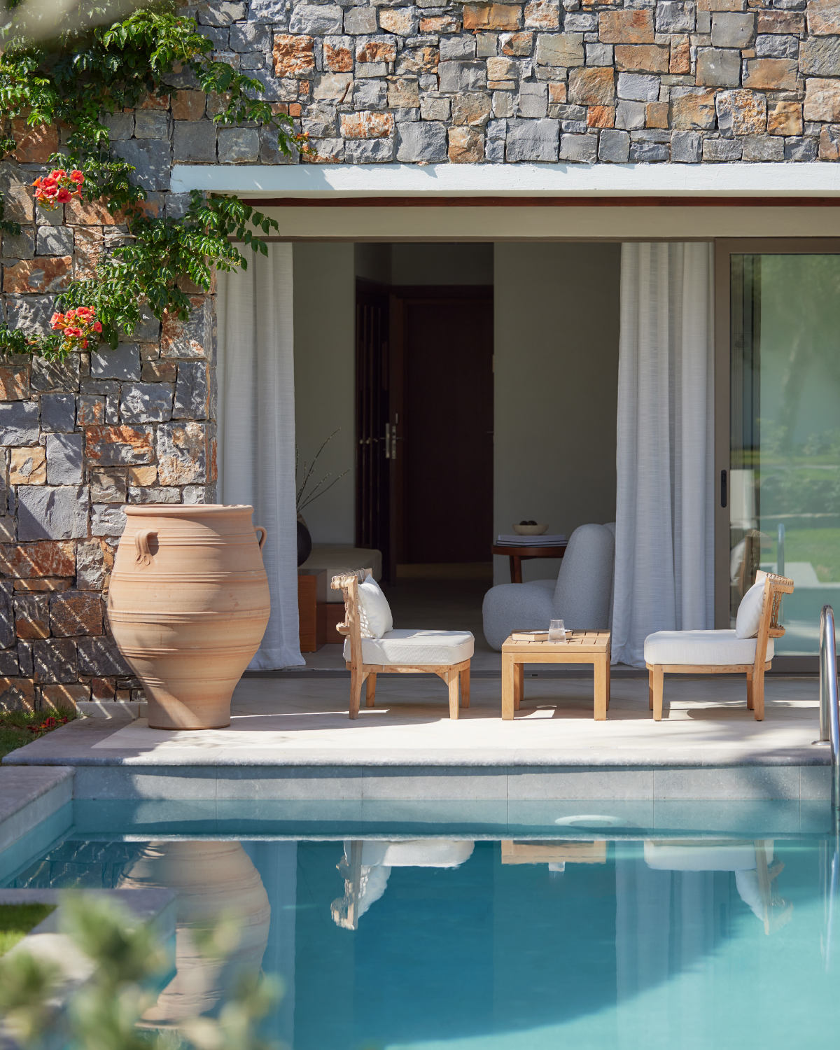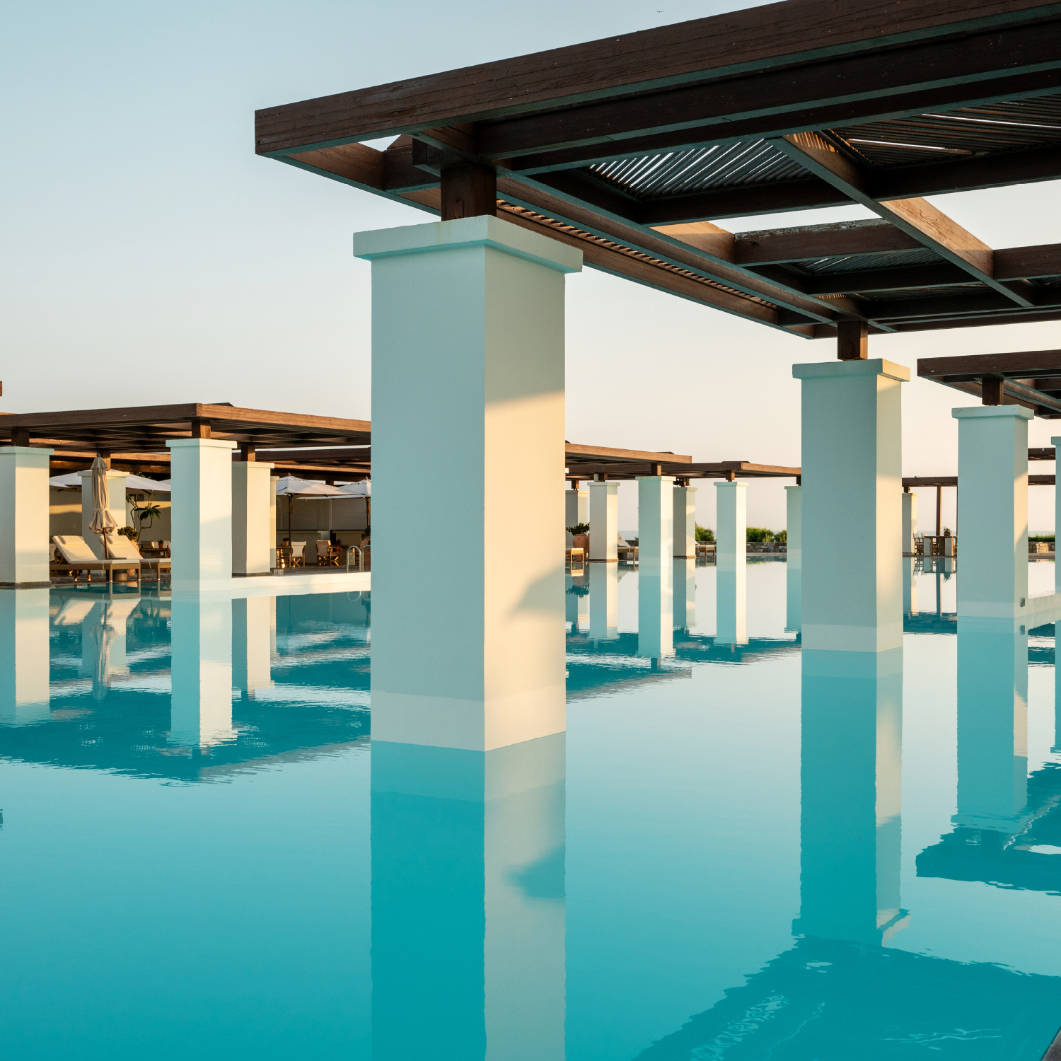 Choose your favorite pool spot between the Olympic-size Seawater Pool 960 m², the Children’s Pool 49, the Indoor Spa Pool (heated April & October), the 2.000m² palm-fringed lagoons or the 58 private Amirandes Pools – temperature control and smooth current, available in selected suites and villas.