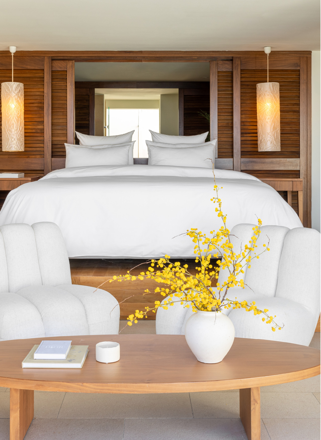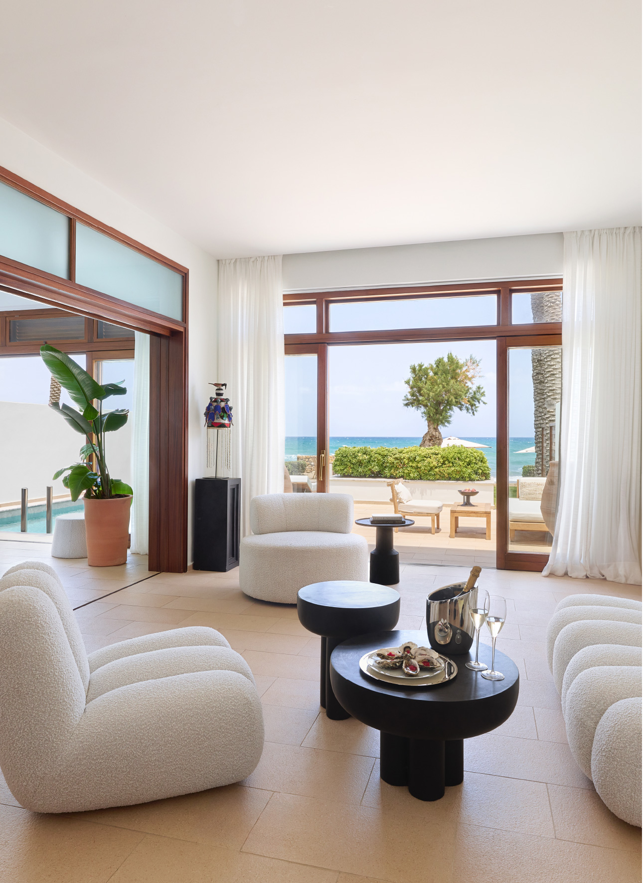 Diese eleganten und geräumigen Villen liegen direkt am exklusiven Strand und verfügen über zwei separate Schlafzimmer, eine möblierte Privatveranda mit beheiztem Infinity-Pool und einen Hof im Freien.