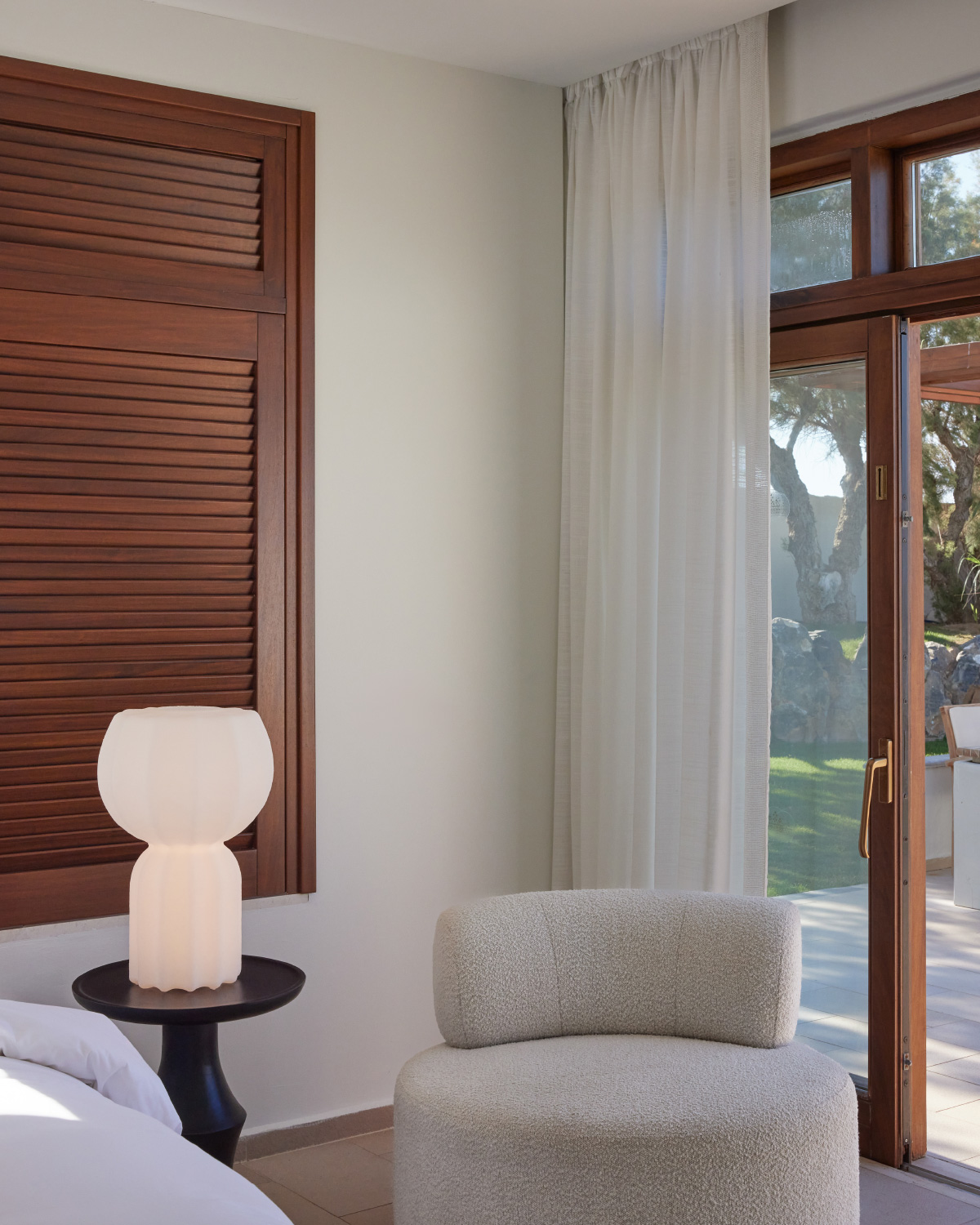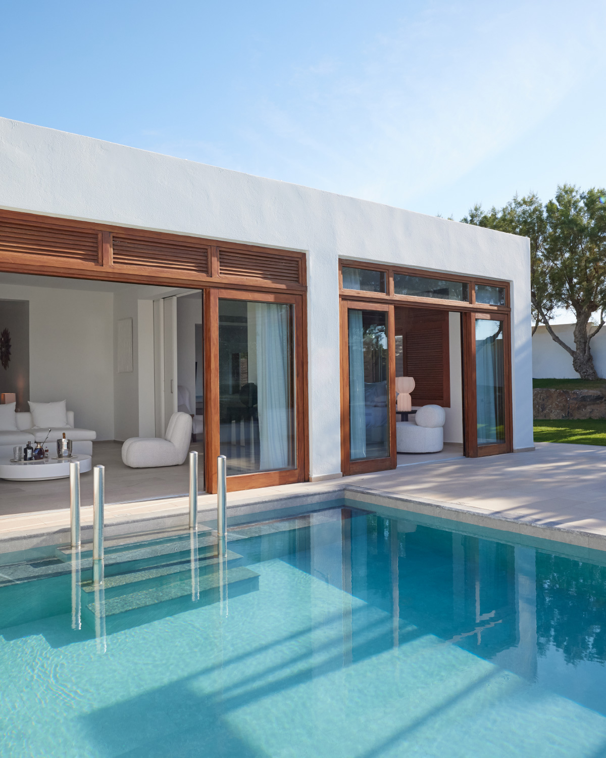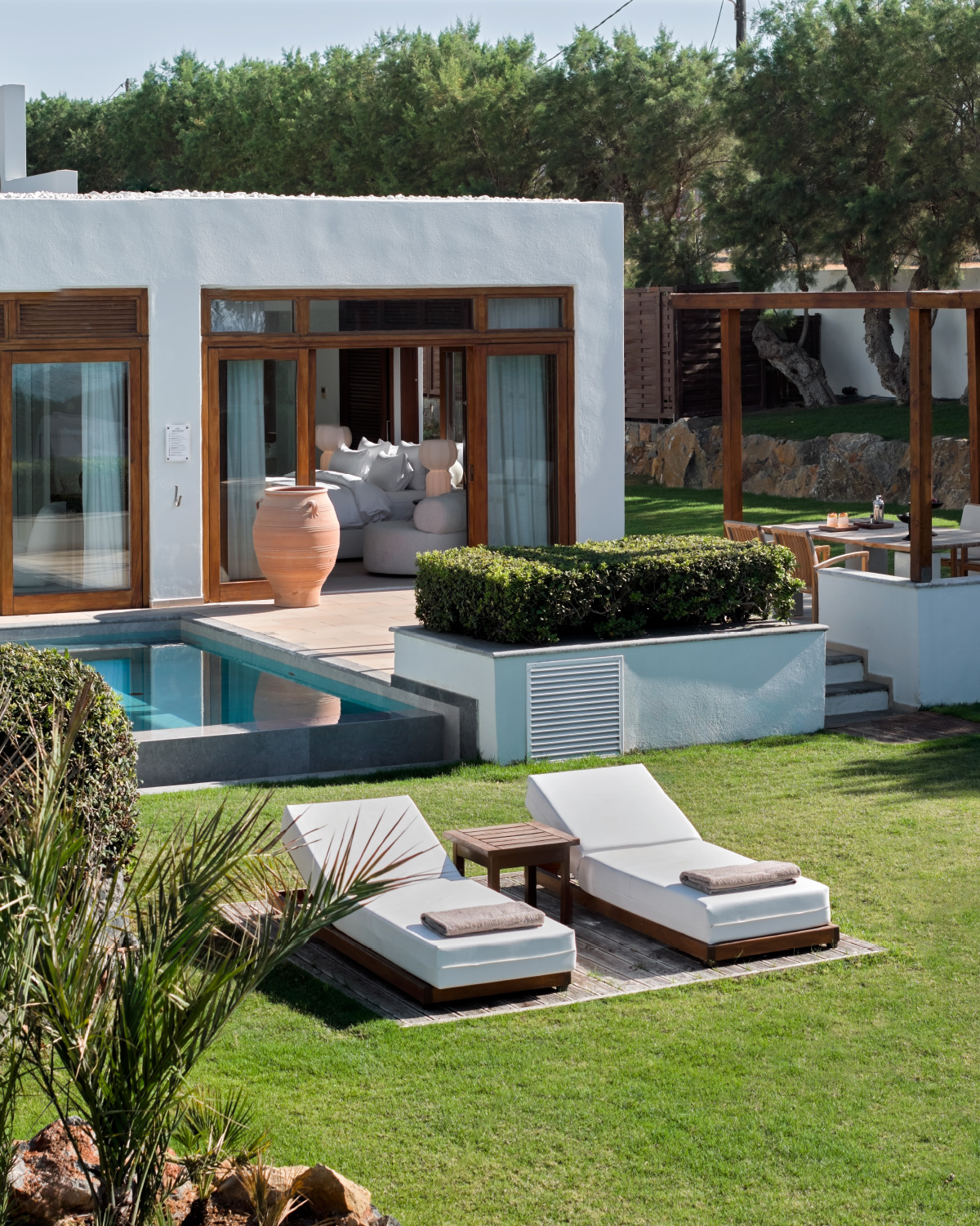 Die ultimative Unterkunft im Grecotel Amirandes! Einzigartige Unterkunft mit ansprechender Architektonik für alle, die diskreten Luxus und Komfort wünschen. Die Unterkunft besteht aus zwei Bereichen, die durch einen mit Steinen gepflasterten Privatweg getrennt sind, und befindet sich in der ersten Reihe des Dorfes direkt am Strand.