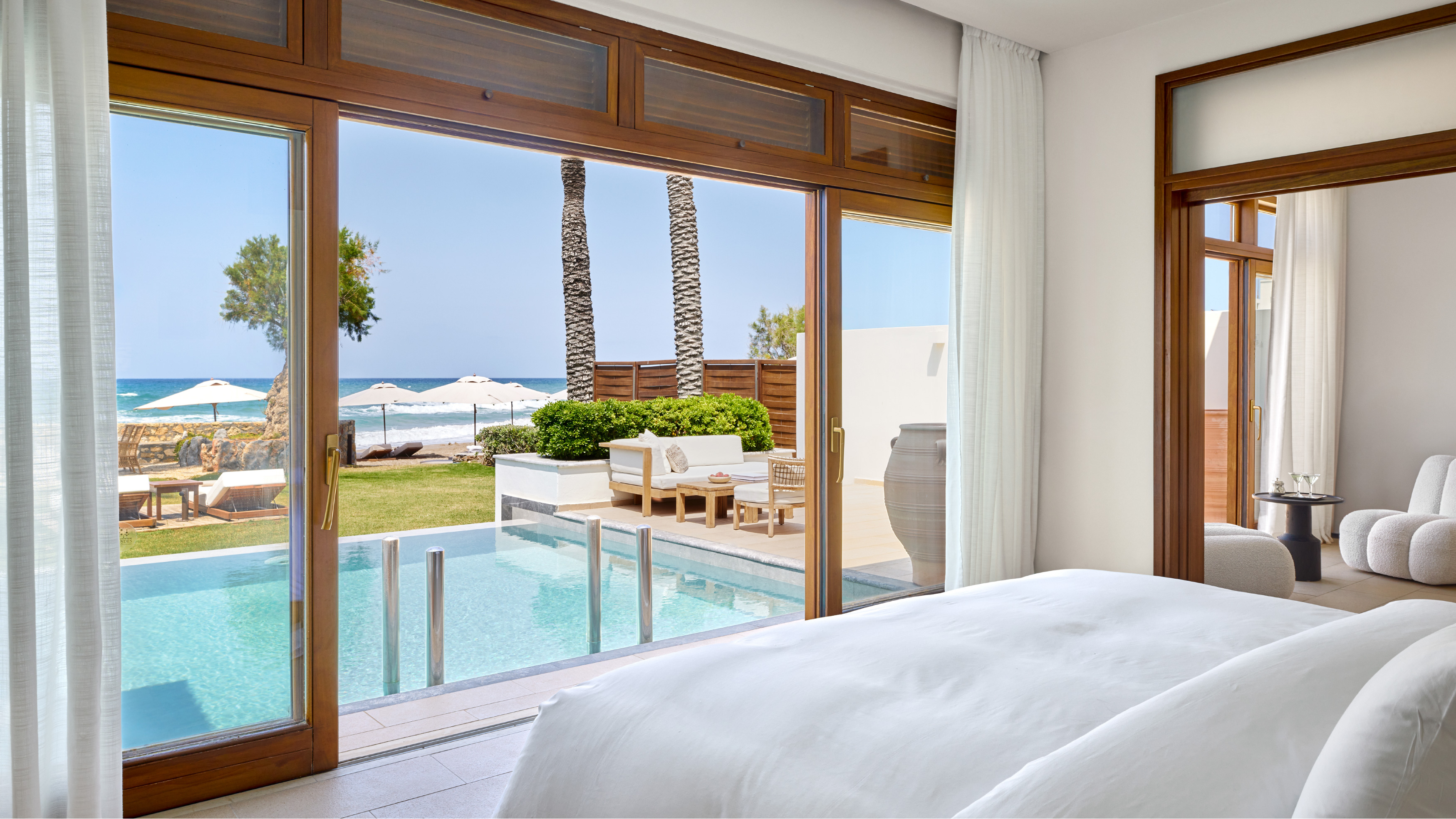 Diese geräumigen und komfortablen Villen bestehen aus einem Hauptschlafzimmer mit Meerblick und einem stilvollen Wohnzimmer.