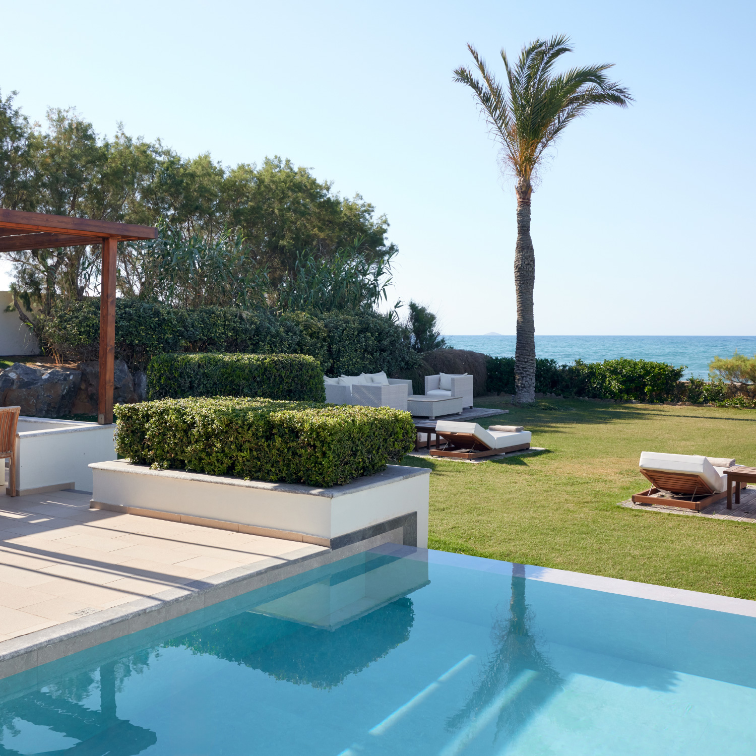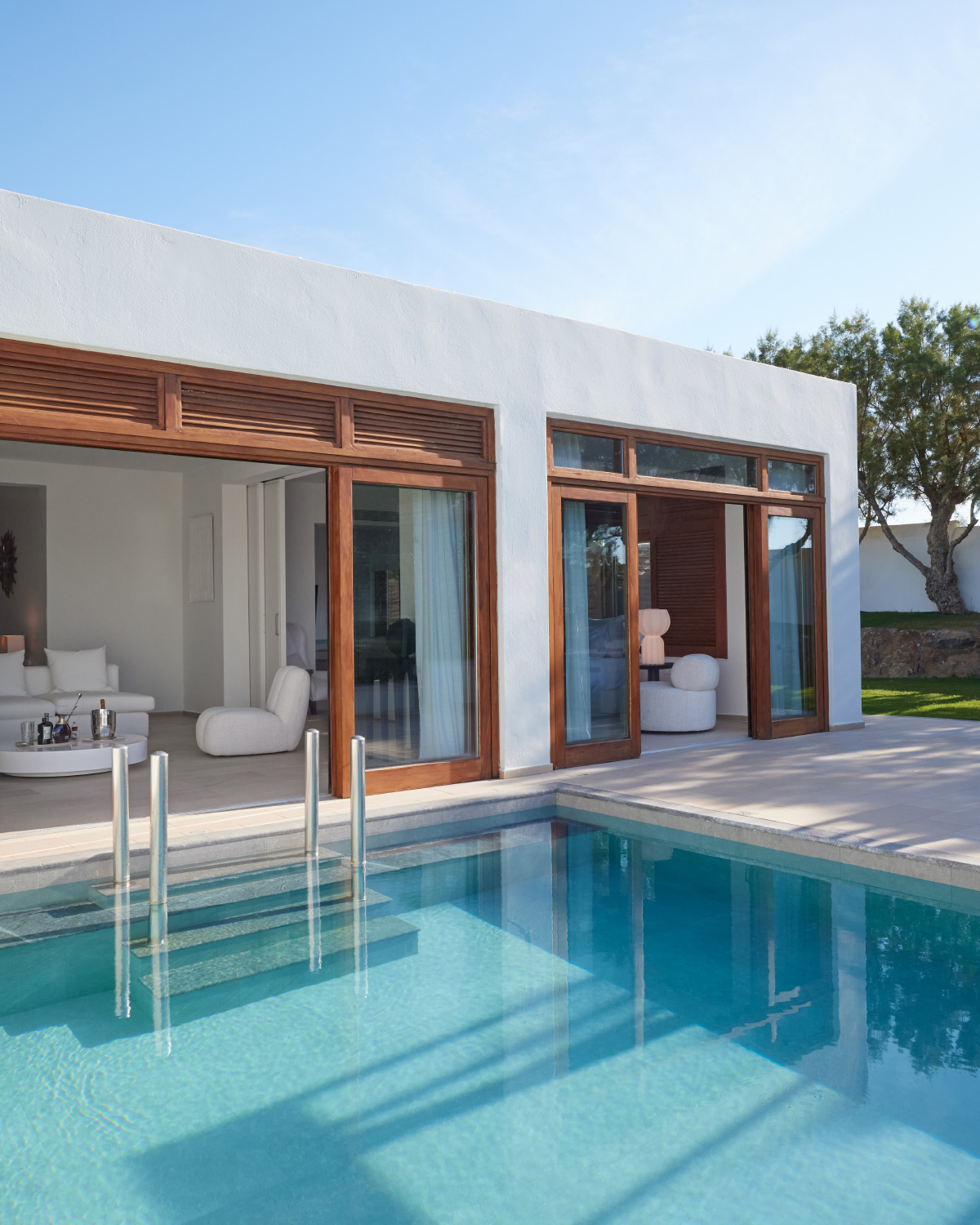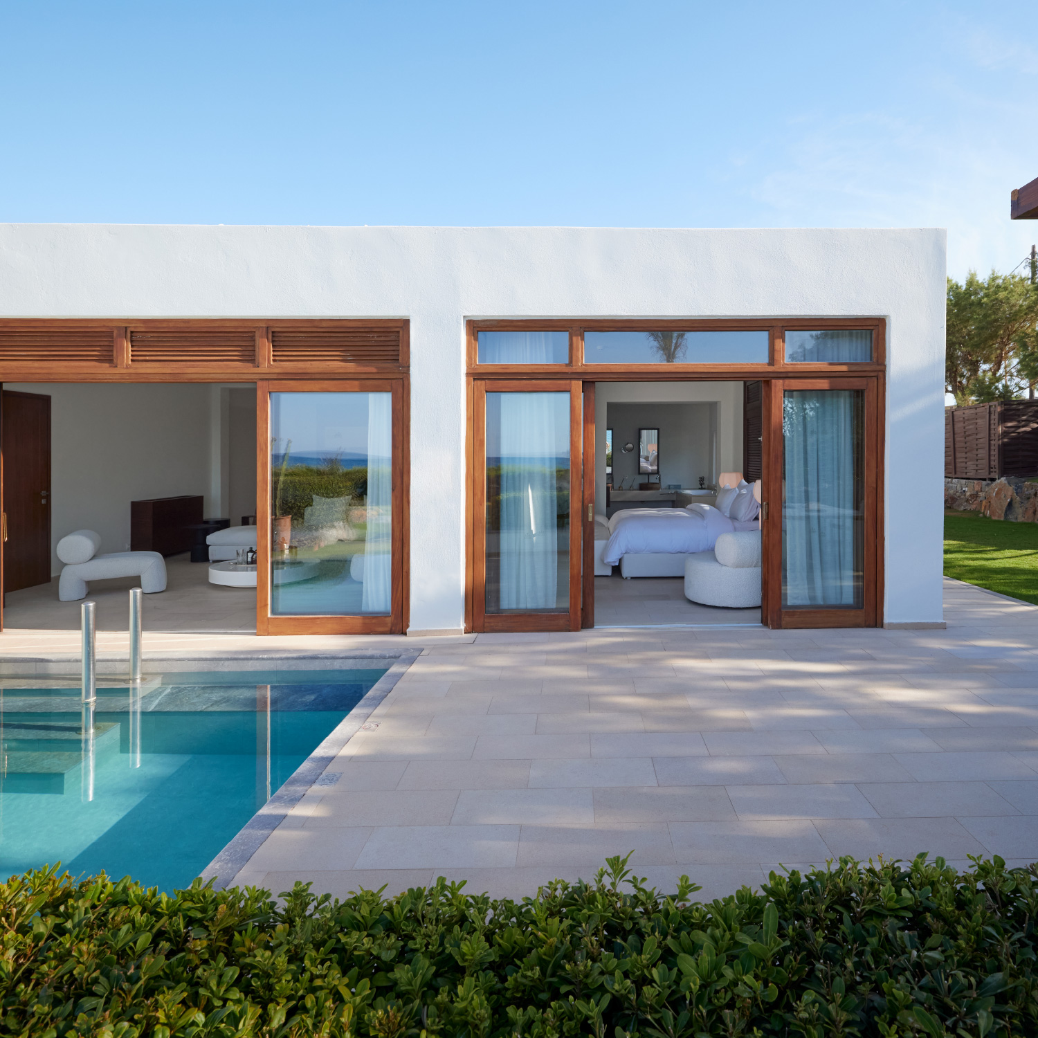 Einzigartige Unterkunft mit ansprechender Architektonik für alle, die diskreten Luxus und Komfort wünschen. Die Unterkunft besteht aus zwei Bereichen, die durch einen mit Steinen gepflasterten Privatweg getrennt sind, und befindet sich in der ersten Reihe des Dorfes direkt am Strand.