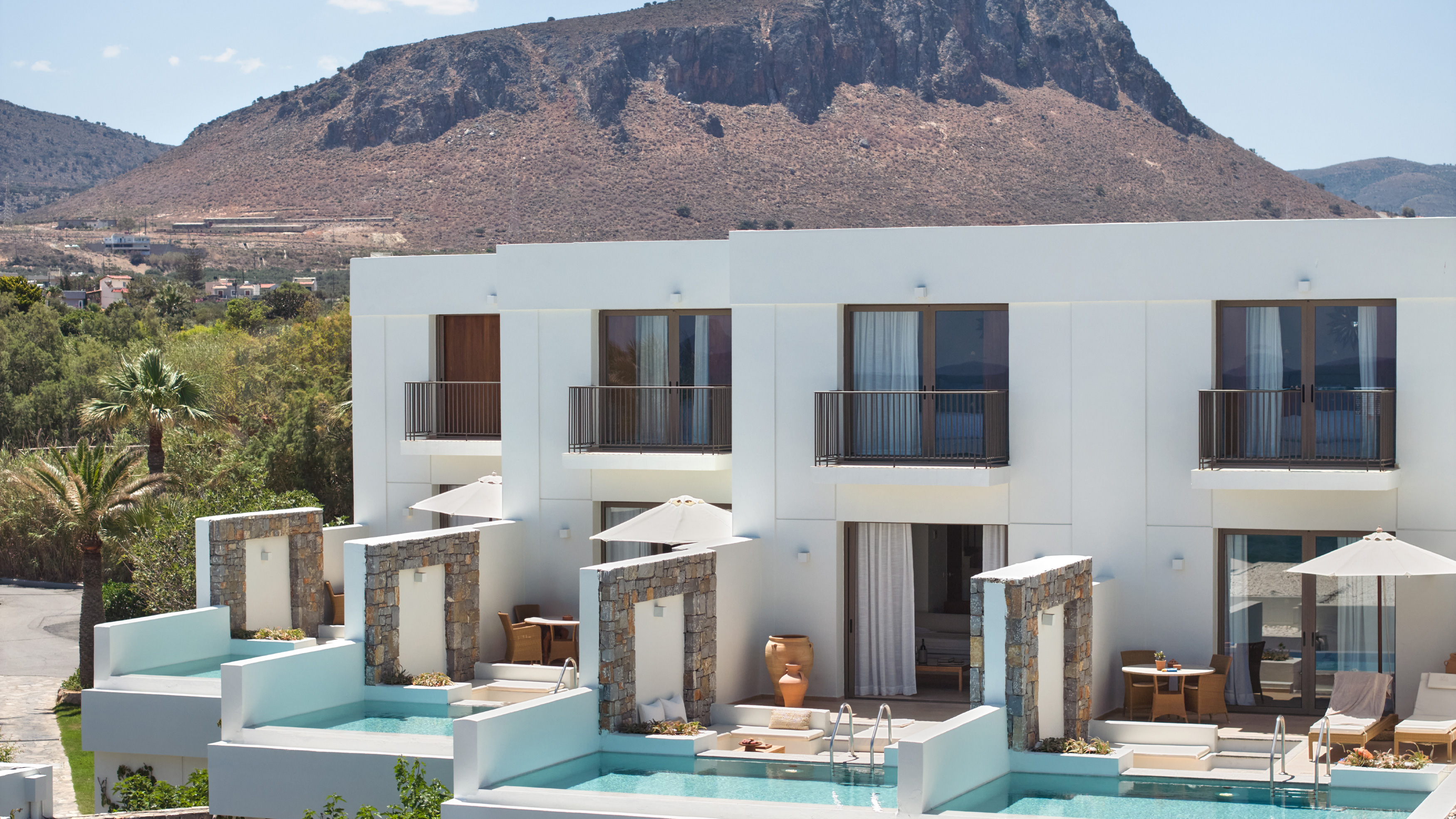 Villa mit elegant angelegtem Hof und Privatterrasse mit luxuriösem Infinity-Pool. Der Hofeingang (und in einigen Villen ein kleiner Brunnen) vermittelt einen ersten Eindruck von der einladenden Unterkunft. Perfekt für Familien oder Paare, die ein Maximum an Privatsphäre wünschen.