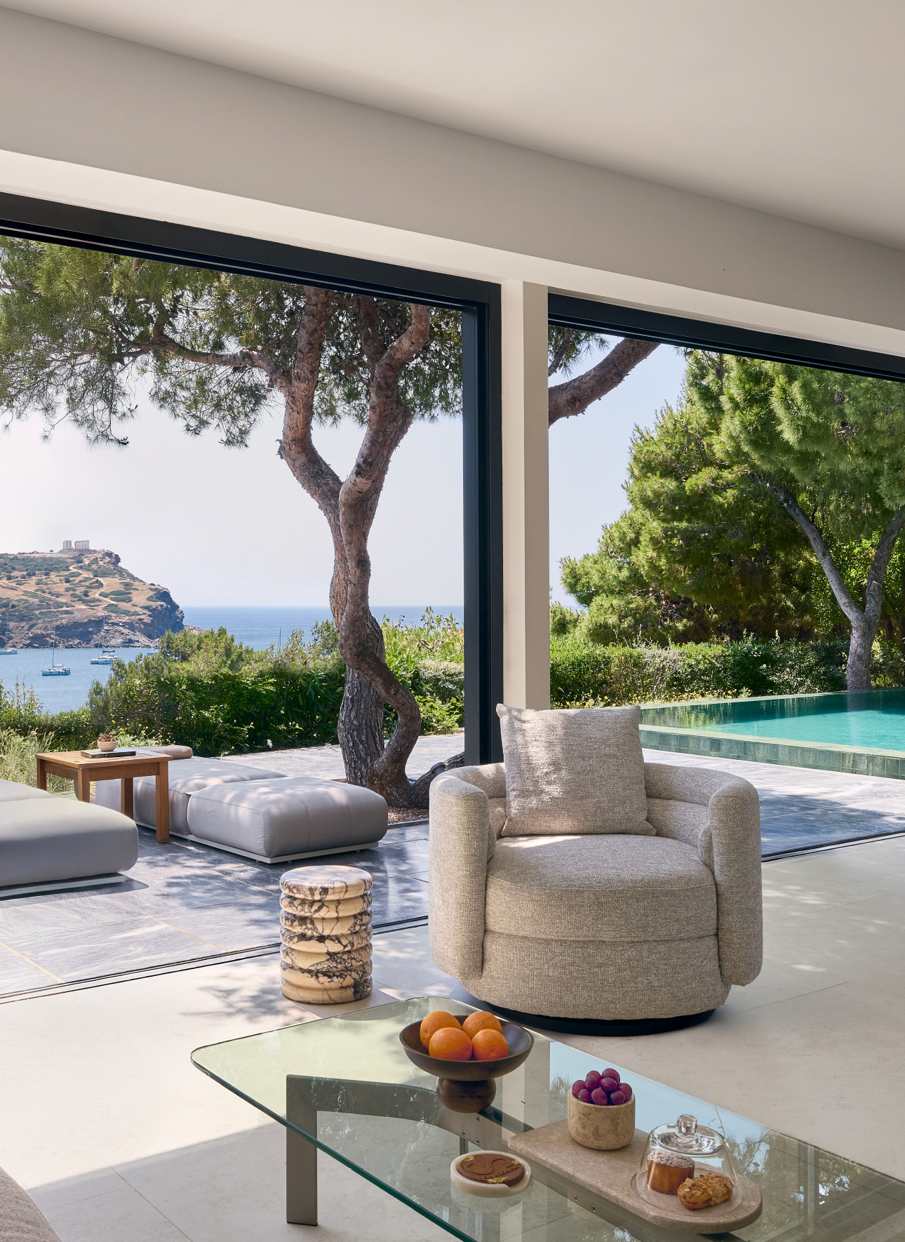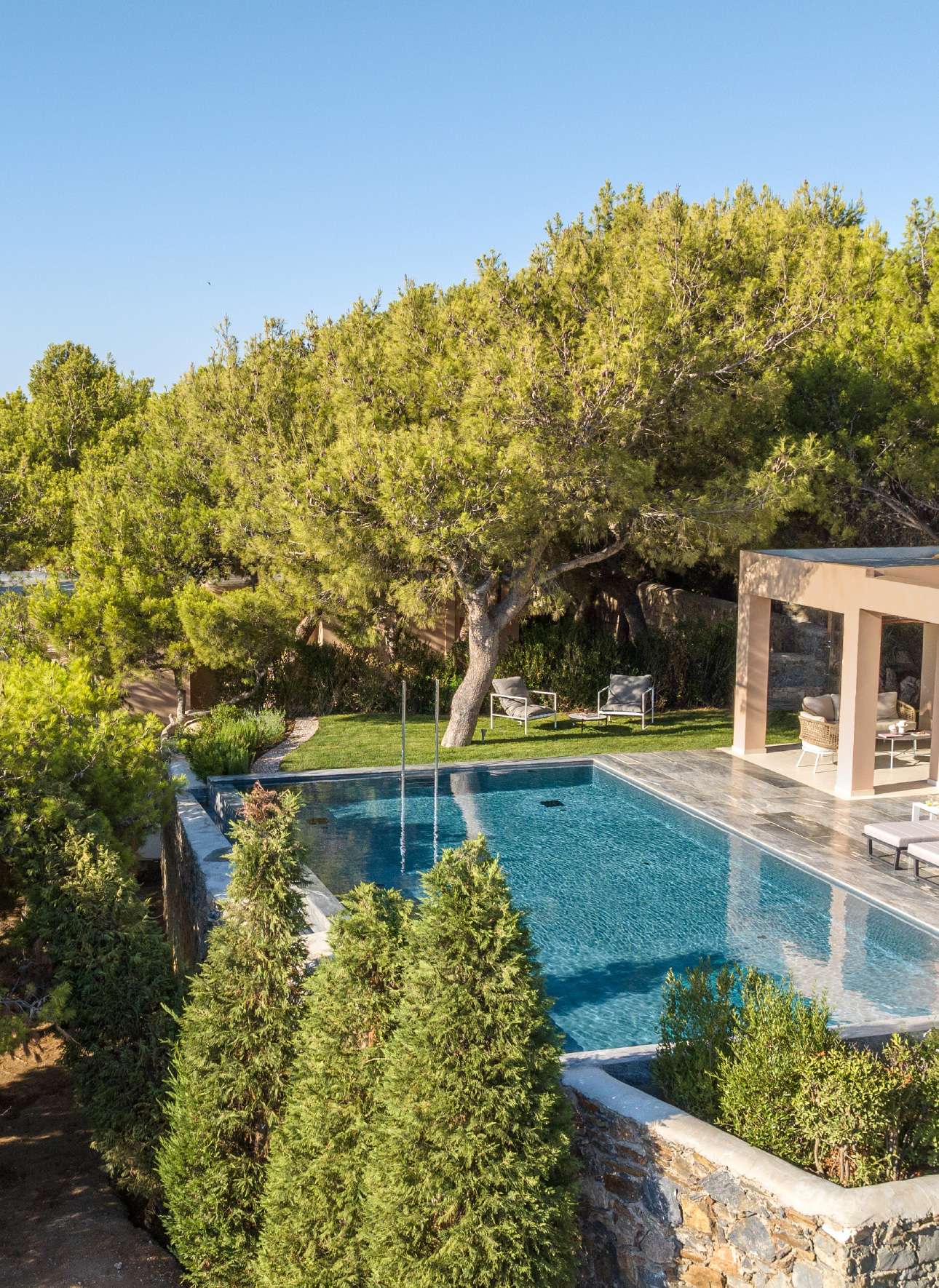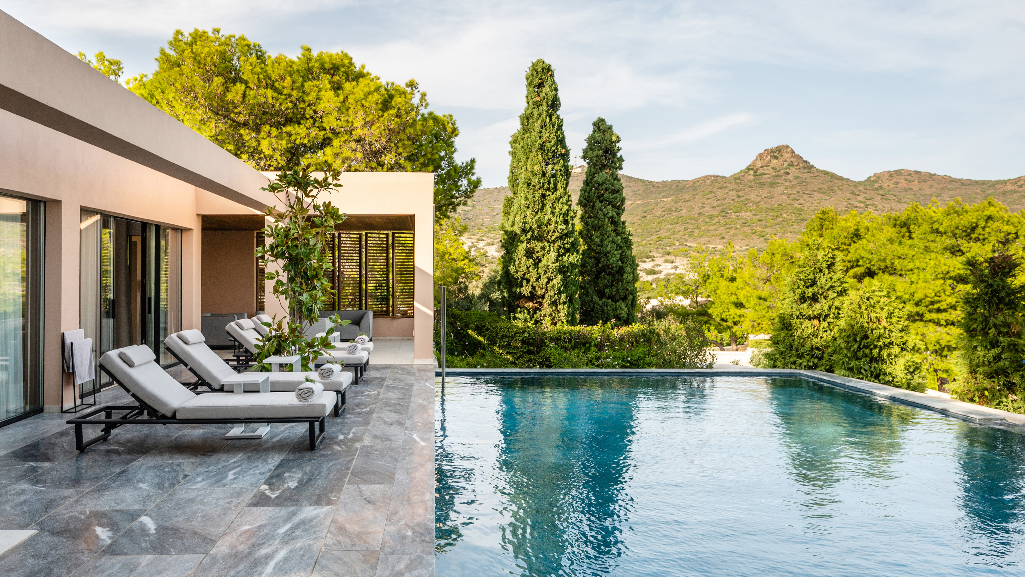 An invitation to experience one of the most beautiful views in the world in an intensely personal way. Arranged amphitheatrically, terracotta coloured Bungalows, Suites and Villas blend into the unspoiled landscape. Exquisite Villas at this idyllic location are among the most sophisticated residences in the Mediterranean. Perfect hideaways with private pools and unique views of the sea & the Temple of Poseidon.