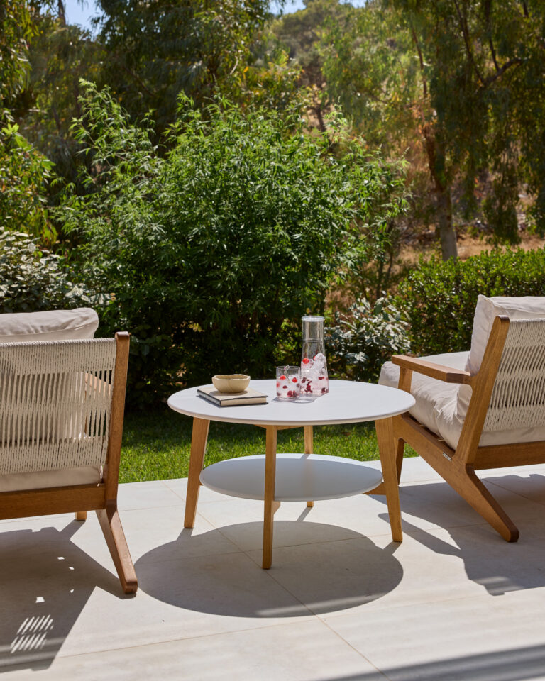 This recently refurbished bungalow exudes contemporary sophistication, featuring calming hues and luxurious furniture, while also boasting stunning vistas of the forest and Sounio’s National Park.
