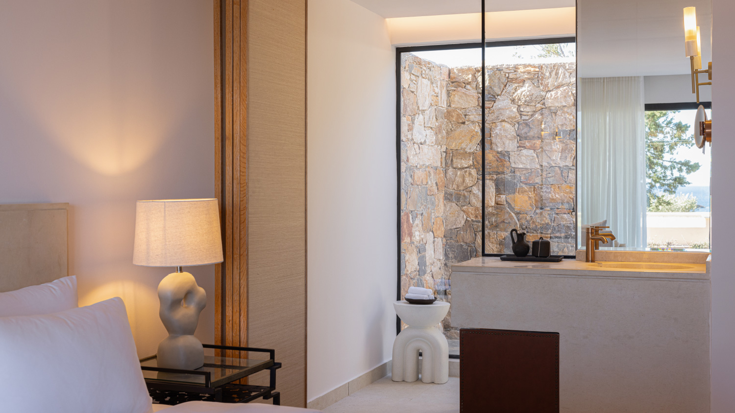 This renovated bungalow, boasting contemporary elegance, calming colors, and refined furnishings, offers Temple and sea views. A peaceful space, enveloped in natural splendor.