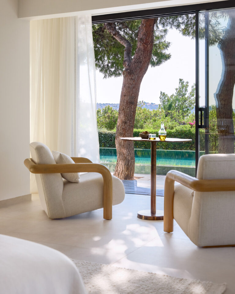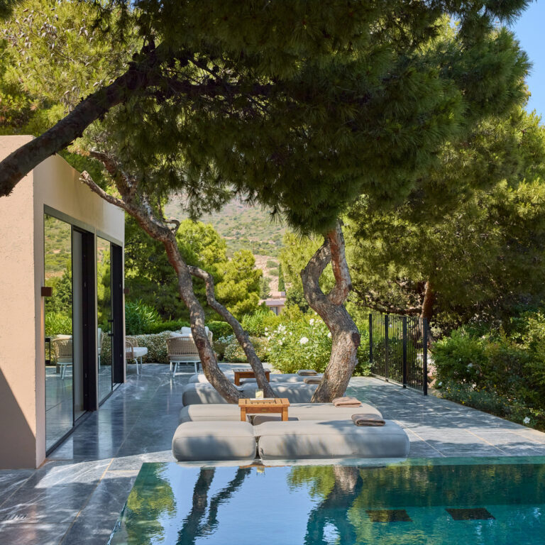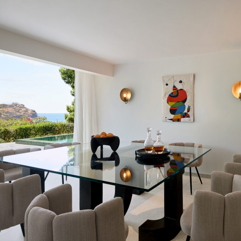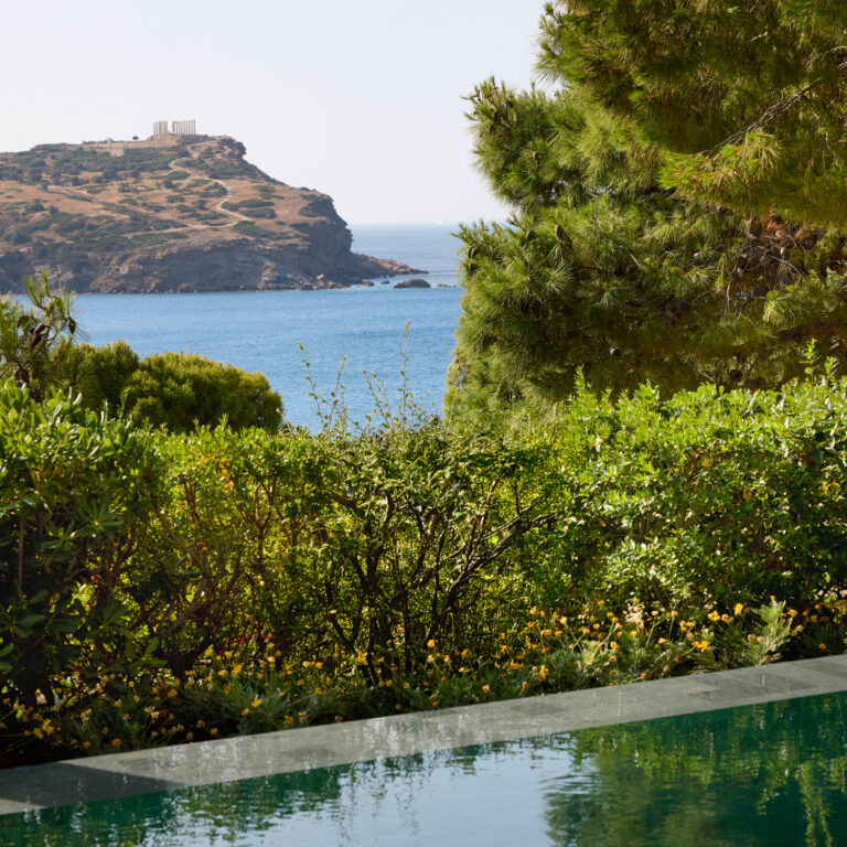 The new Grand Villa Poseidon at Cape Sounio stands out for its blend of rustic natural surroundings and opulent interiors, offering unparalleled comfort that aligns perfectly with refined elegance and style. Positioned at the most distinguished spot on Cape Sounio, this villa affords breathtaking vistas of the Aegean Sea and the Temple of Poseidon.