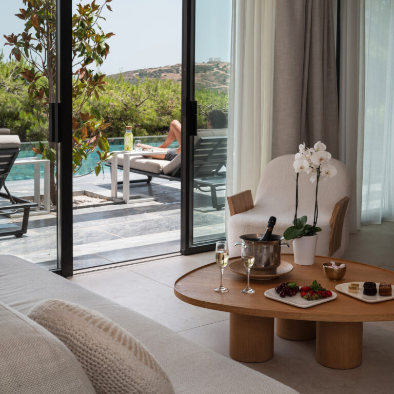 Where extraordinary myth meets renowned expertise, Cape Sounio’s reimagined Spa invites you to embark on an unmatched journey in history, healing and happiness. Inspired by the resort’s unparalleled setting and innate energy – set respectfully on an archaeological site, nestled within a pristine pine forest reserve, and graced with two private beaches at the edge of the Aegean Sea – visionary Vicky Vlachonis presents the innovative, holistic wellness program ‘Elevations of Wellness’.