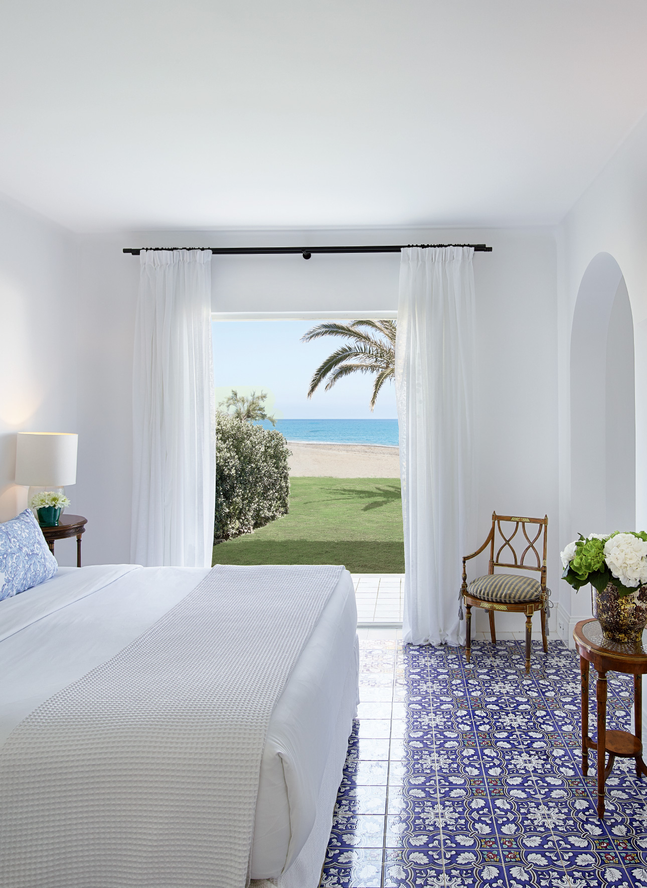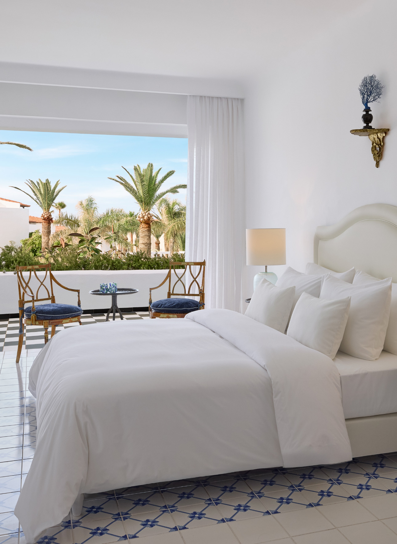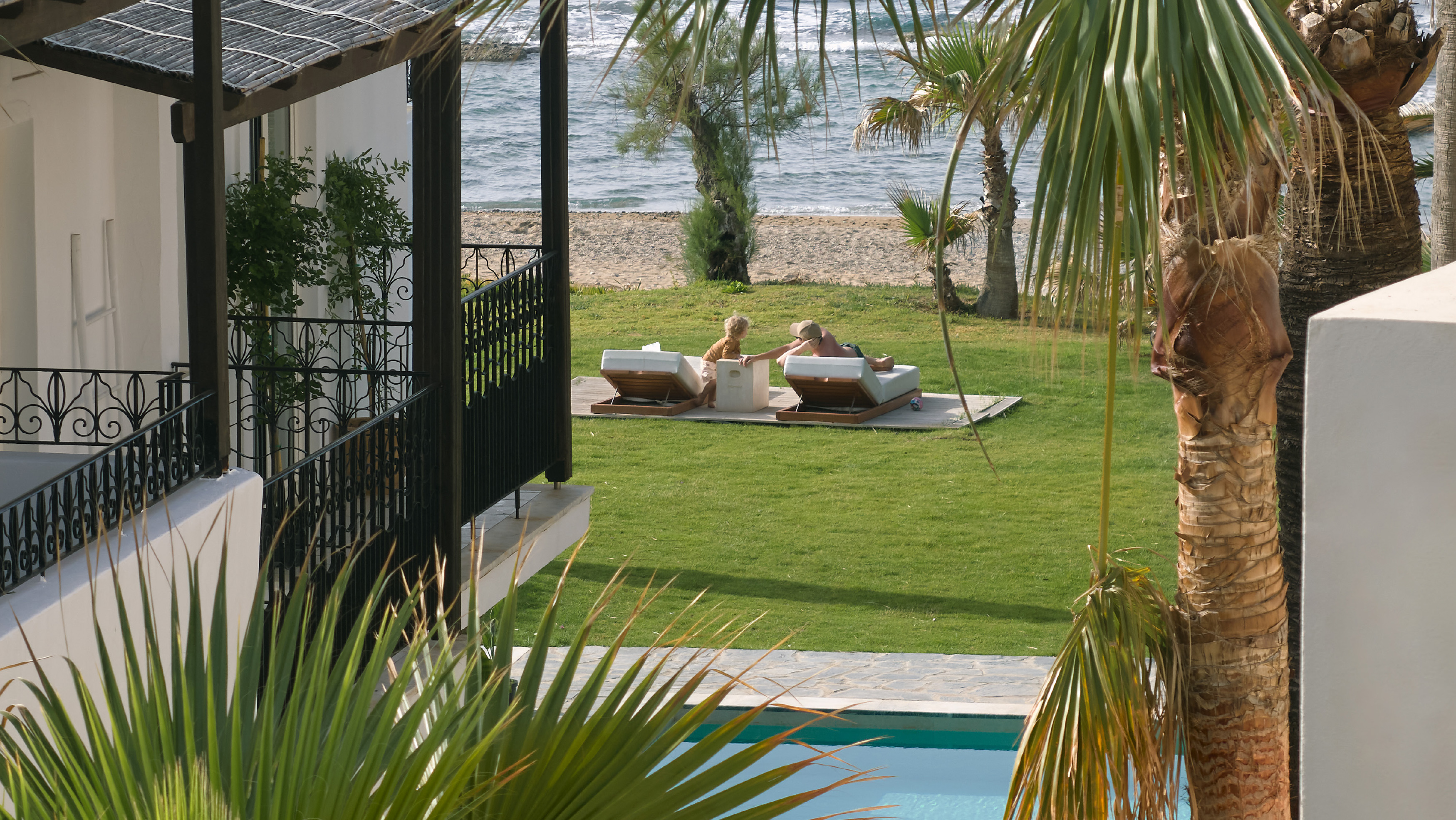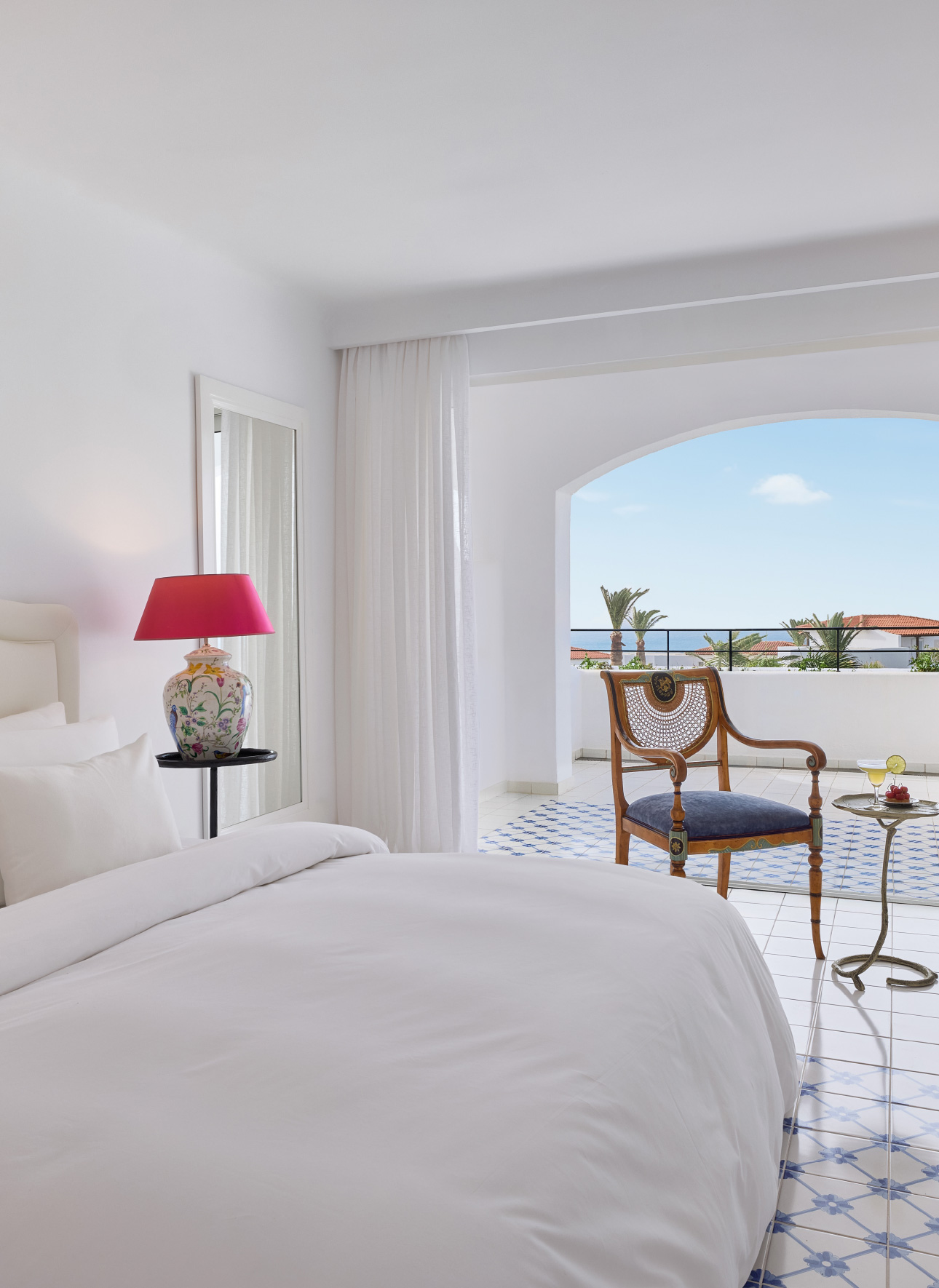 Main house suites, bungalow suites, maisonettes, villas: each one is unique, encapsulating a welcoming and comfortable feeling. All with exhilarating views, an aura of privacy and exquisite flair. Thoughtfully designed with an intrinsic play of colours, textures and patterns. Spaces furinished gracefully with antique and contemporary furniture, handmade floor tiles, exceptional designer fabrics, enticing spa-inspired bathrooms, capturing the allure of a perfect holiday.