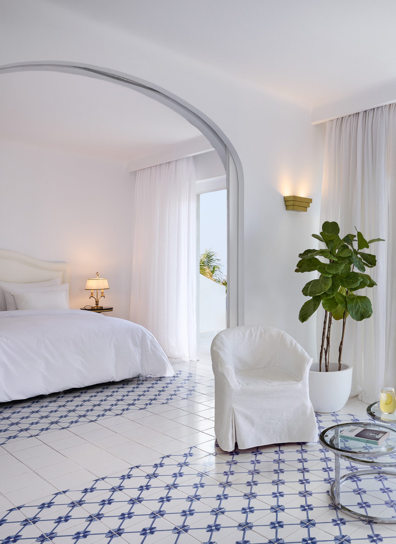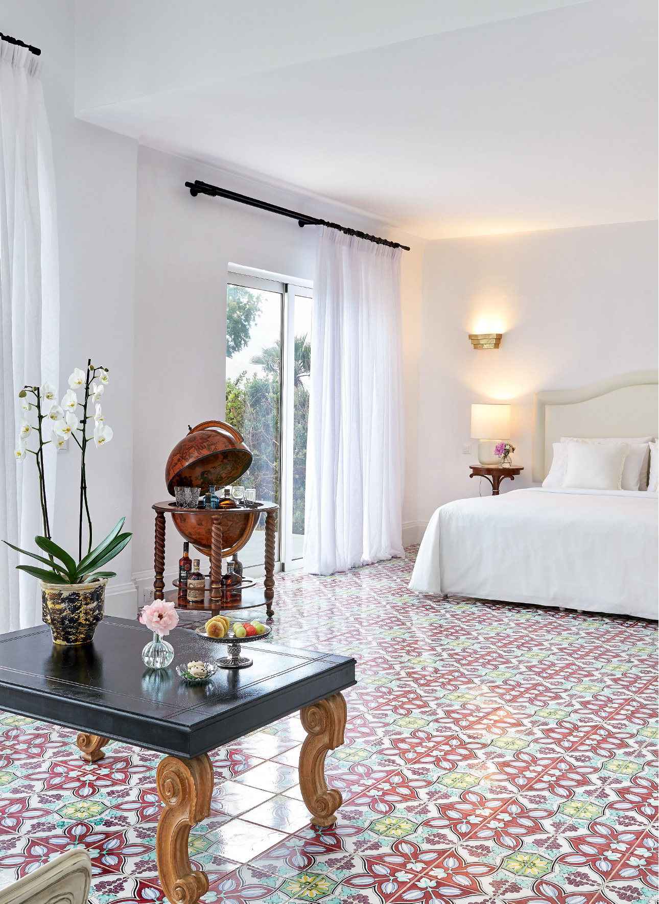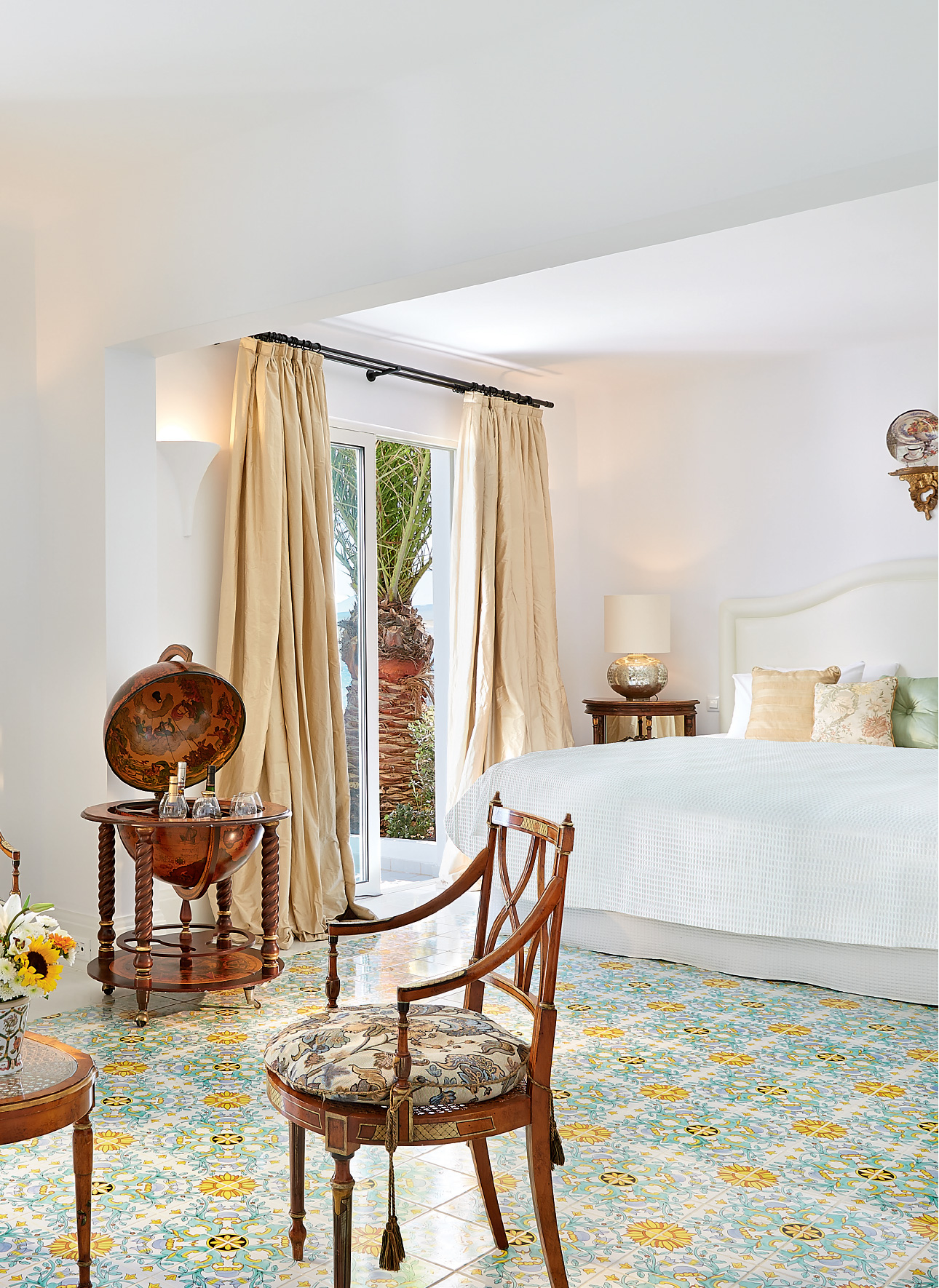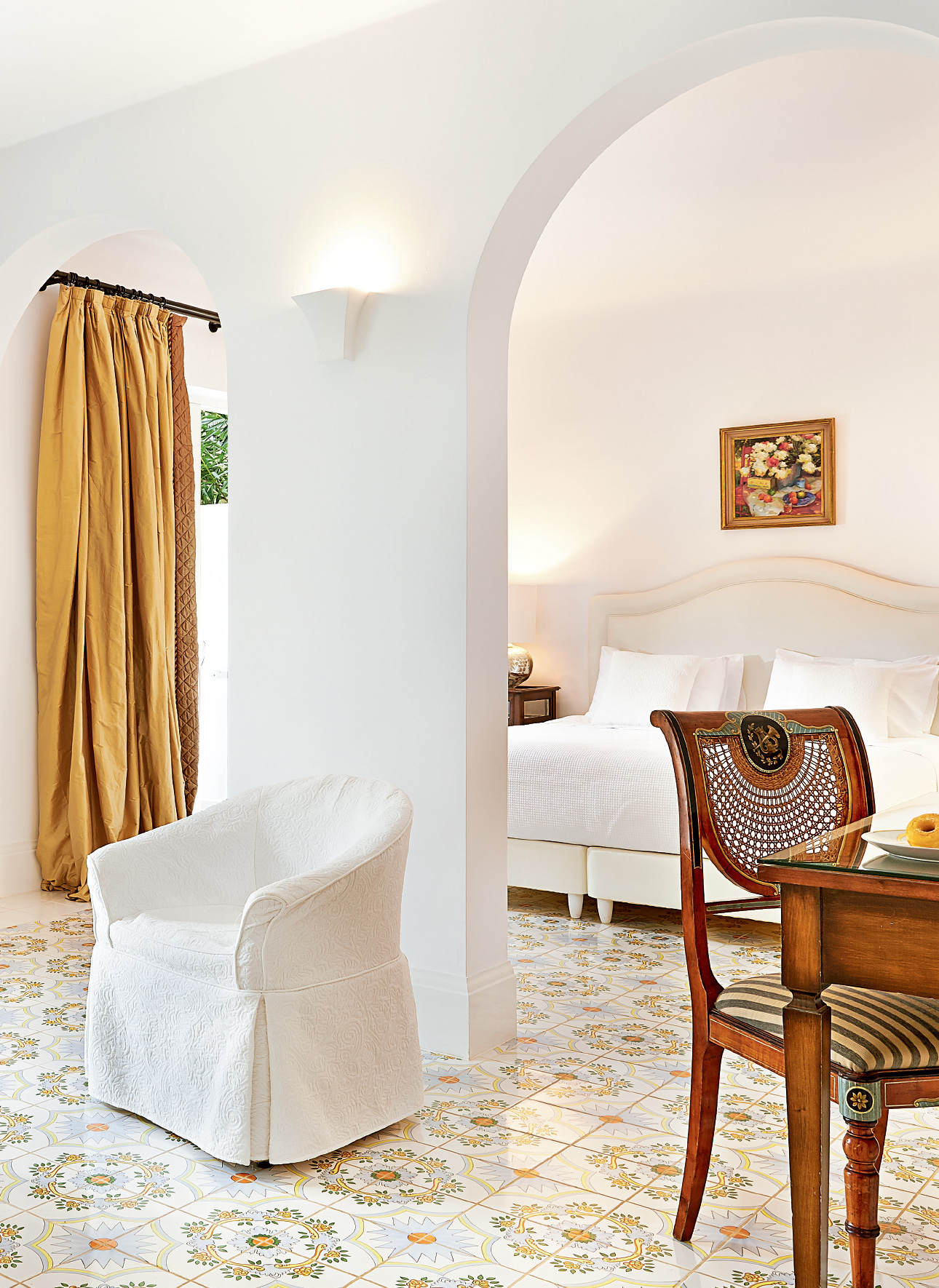 Main house suites, bungalow suites, maisonettes, villas: each one is unique, encapsulating a welcoming and comfortable feeling. All with exhilarating views, an aura of privacy and exquisite flair. Thoughtfully designed with an intrinsic play of colours, textures and patterns. Spaces furinished gracefully with antique and contemporary furniture, handmade floor tiles, exceptional designer fabrics, enticing spa-inspired bathrooms, capturing the allure of a perfect holiday.