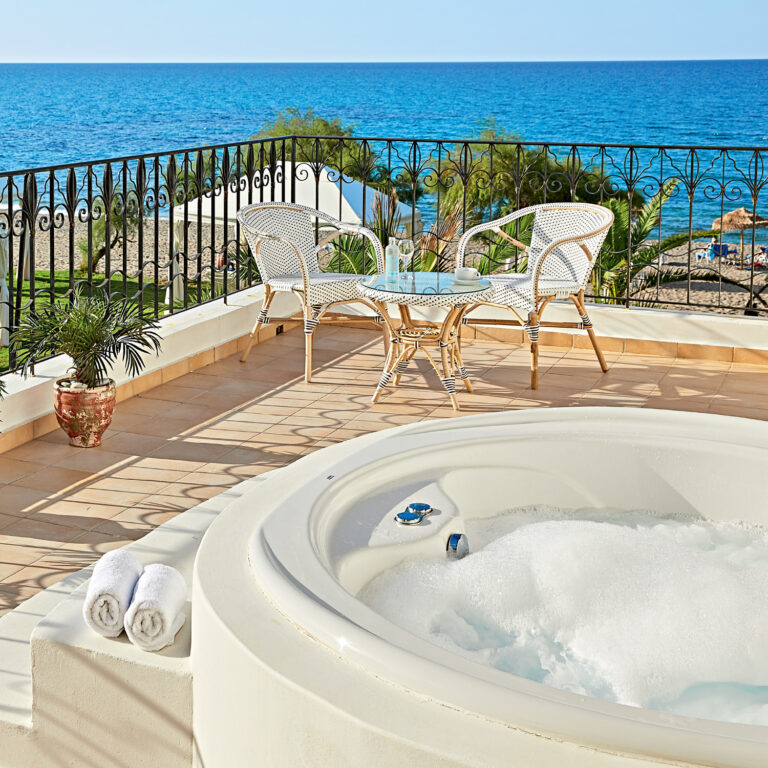 Ideal for larger parties seeking total exclusivity, the luxurious villas feature open plan living area, impressively designed lounge and bedrooms located side by side and with an interconnecting door between them for optional privacy, expansive verandas offering direct glimpse of the Cretan.
