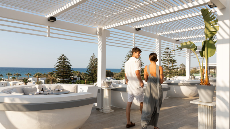 Order a drink or light meal from the poolside Brasserie overlooking the Cretan Riviera.