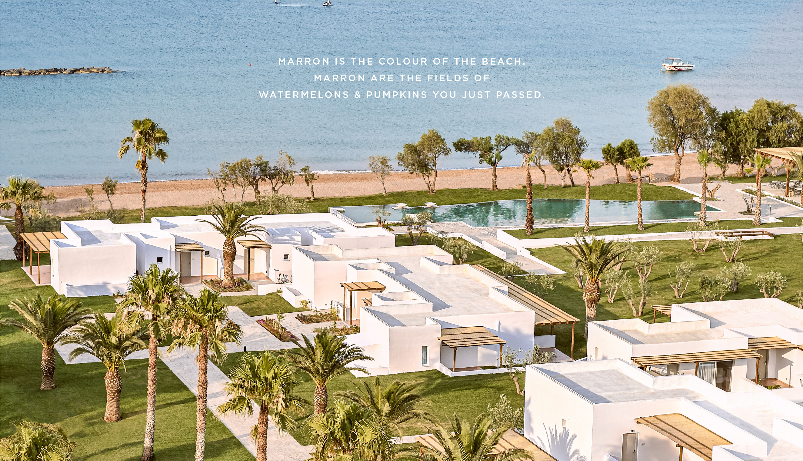 Marron is the colour of the beach. The resort lies directly on a Blue Flag awarded sandy/pebbled beach. The golden sand runs down to the azure sea that is shallow and perfect for small children.