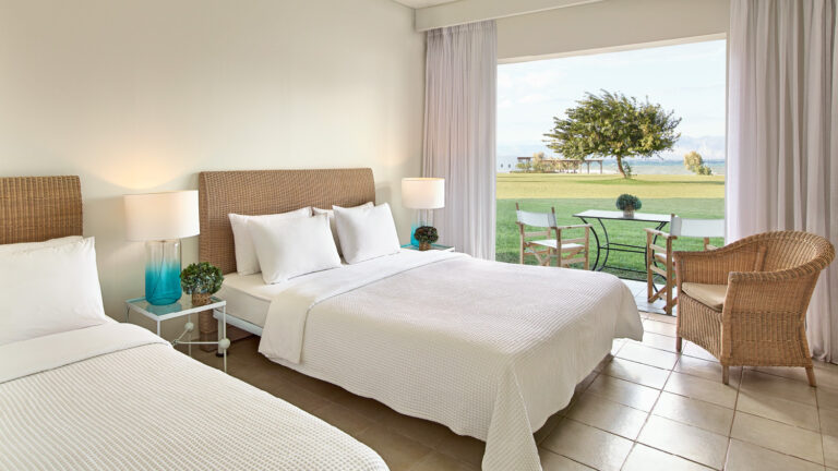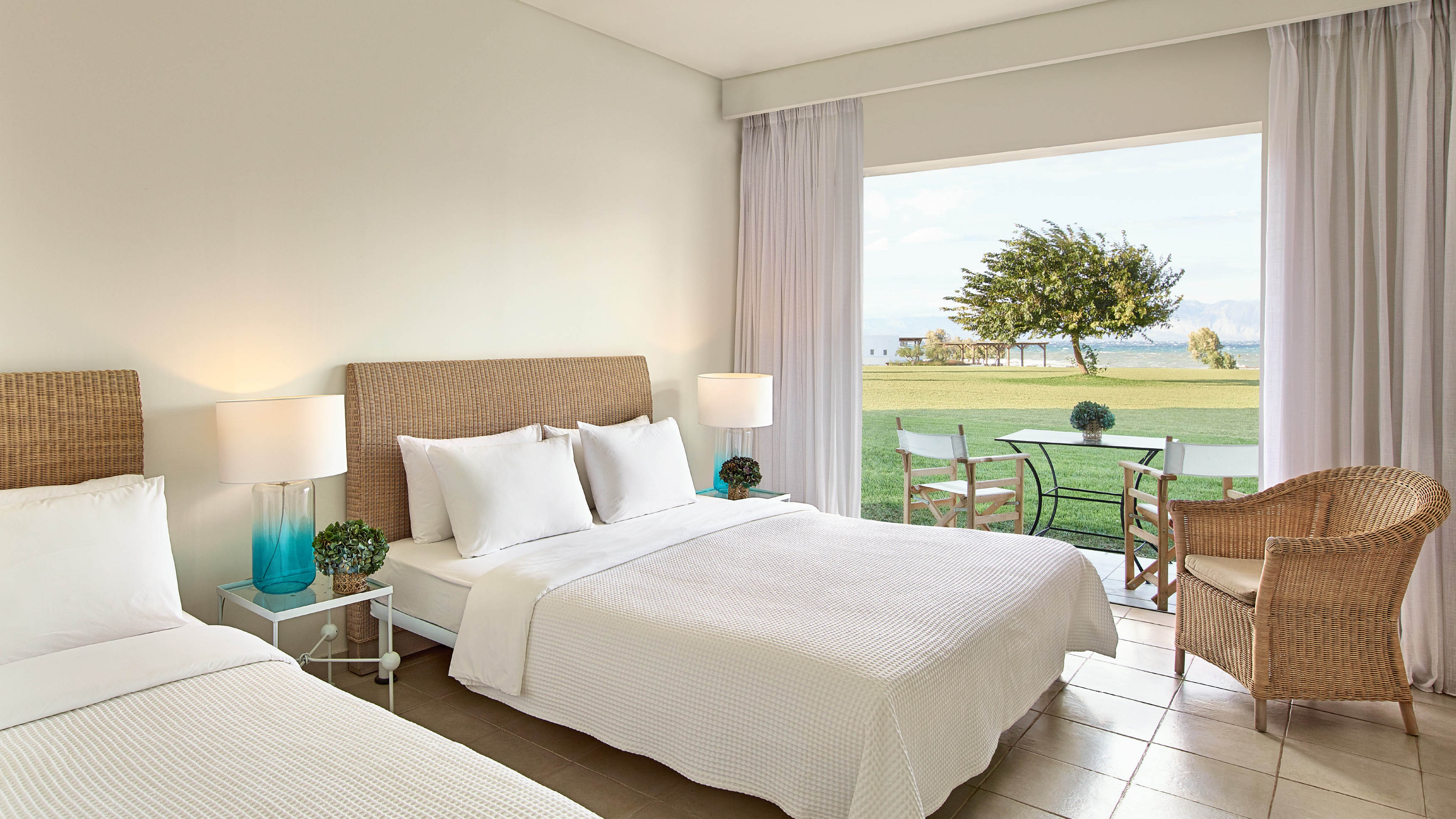 Light filled open-plan guestrooms, appointed in the bungalow clusters, offer a Mediterranean-inspired feel overlooking the eternal landscape and the crystal-clear sea.