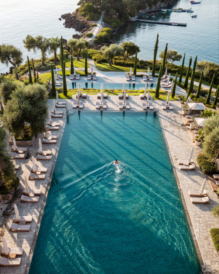 Grecotel Corfu Imperial is probably Greece’s most impressively located hotel, perched above the