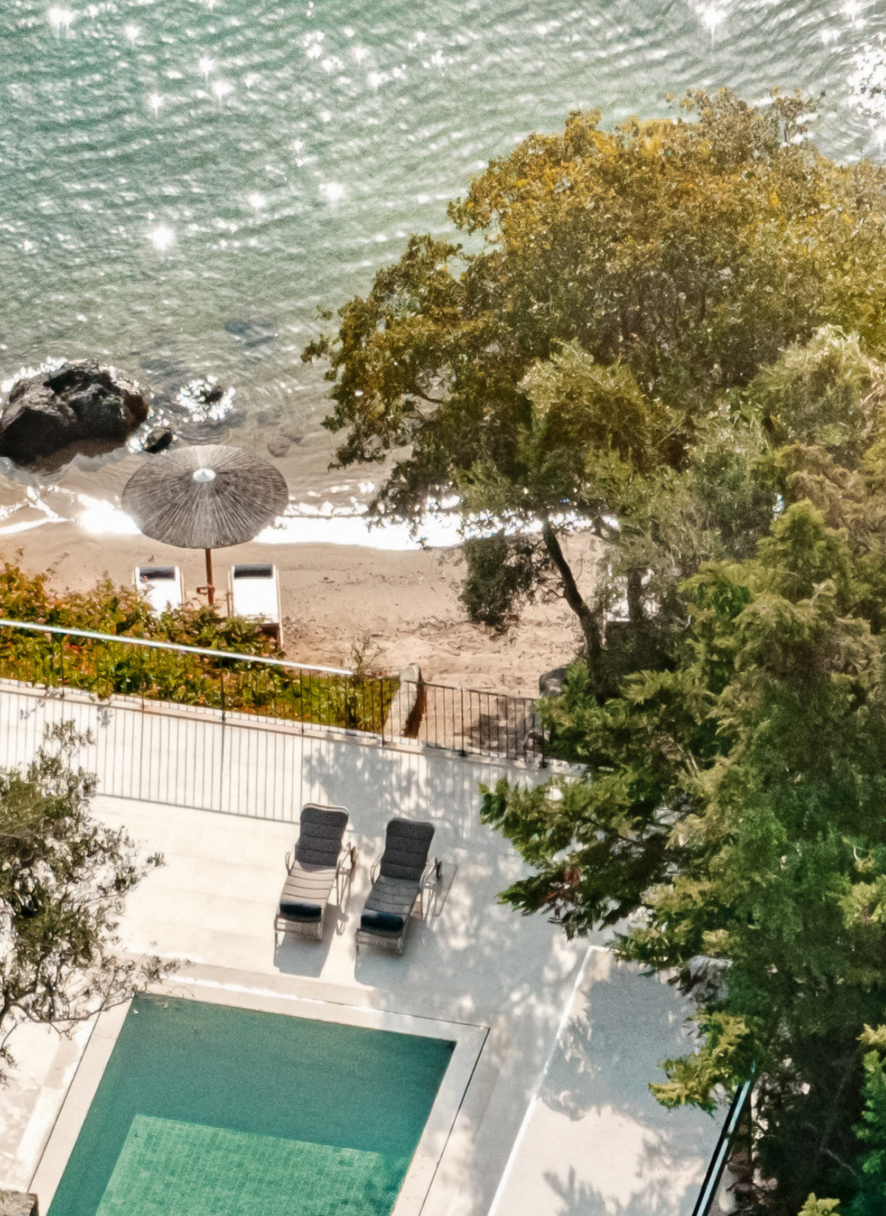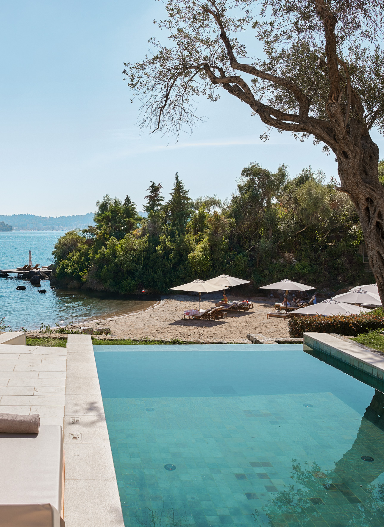 6 Bedroom Beachfront Villa is your own Corfiot Mansion in the Ionian countryside, featuring 6 bedrooms, 2 Private swimming pools, shaded terraces with lounge and dining areas, sun beds and umbrellas, private gardens & private steps to the beach.