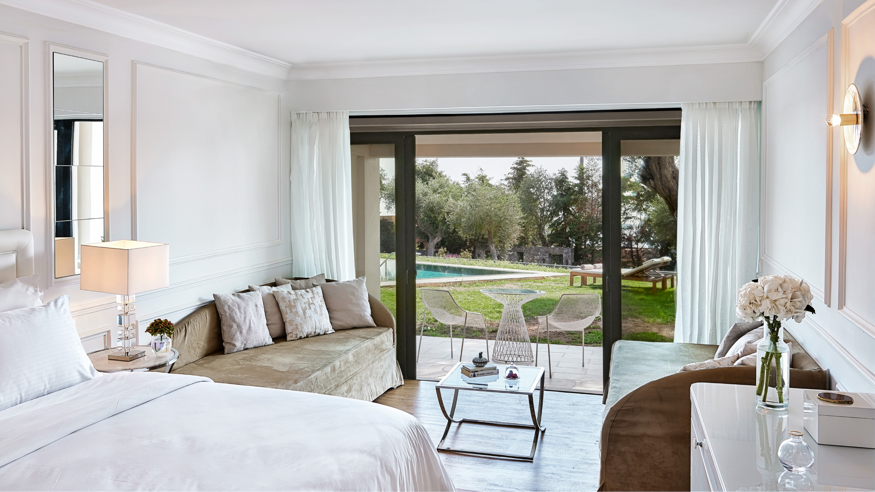 Nestled among the fragrant blooming gardens that face the Ionian Sea, comfortable and stylish family accommodation provides access to a newly added sharing pool in front.
