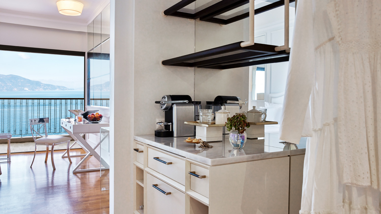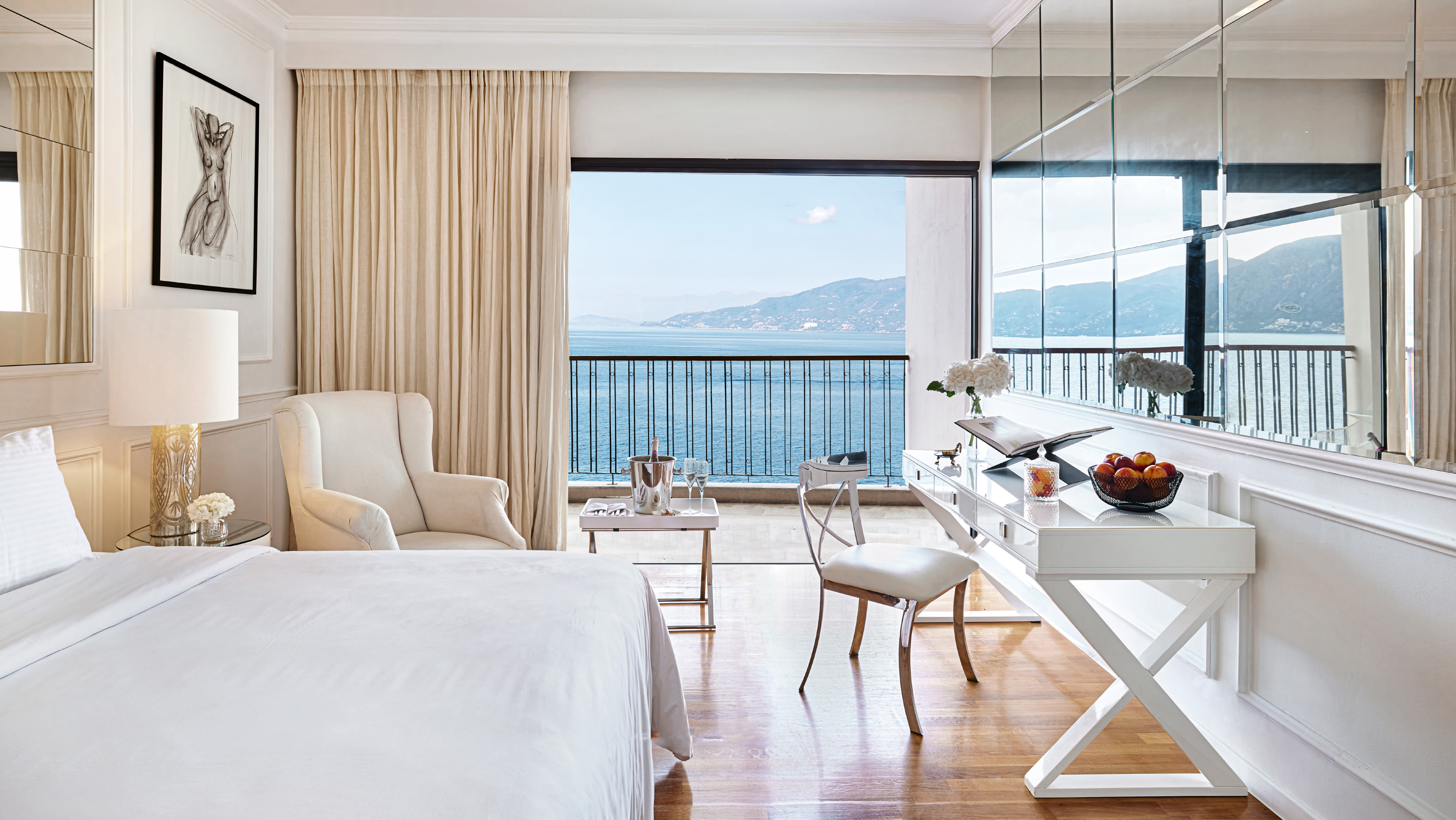 Located on a higher floor of the main building with lofty, bird-eye sea views, the new Cruise Guestroom promises airy vibes. The blue toned horizon unwinds under the fully-equipped balcony and offers the endless peacefulness of the Ionian’s allure.