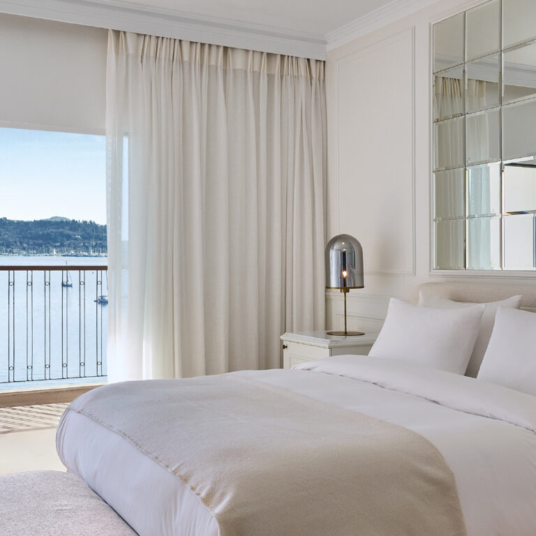 Uniquely appointed on the 5th and highest floor of Corfu Imperial main building, this magnificent suite offers an amazing view over Kommeno Peninsula. Special features like exclusive hand-carved furniture, opulent yet comfortable lounges and floor-to-ceiling glass windows for unique holiday moments.