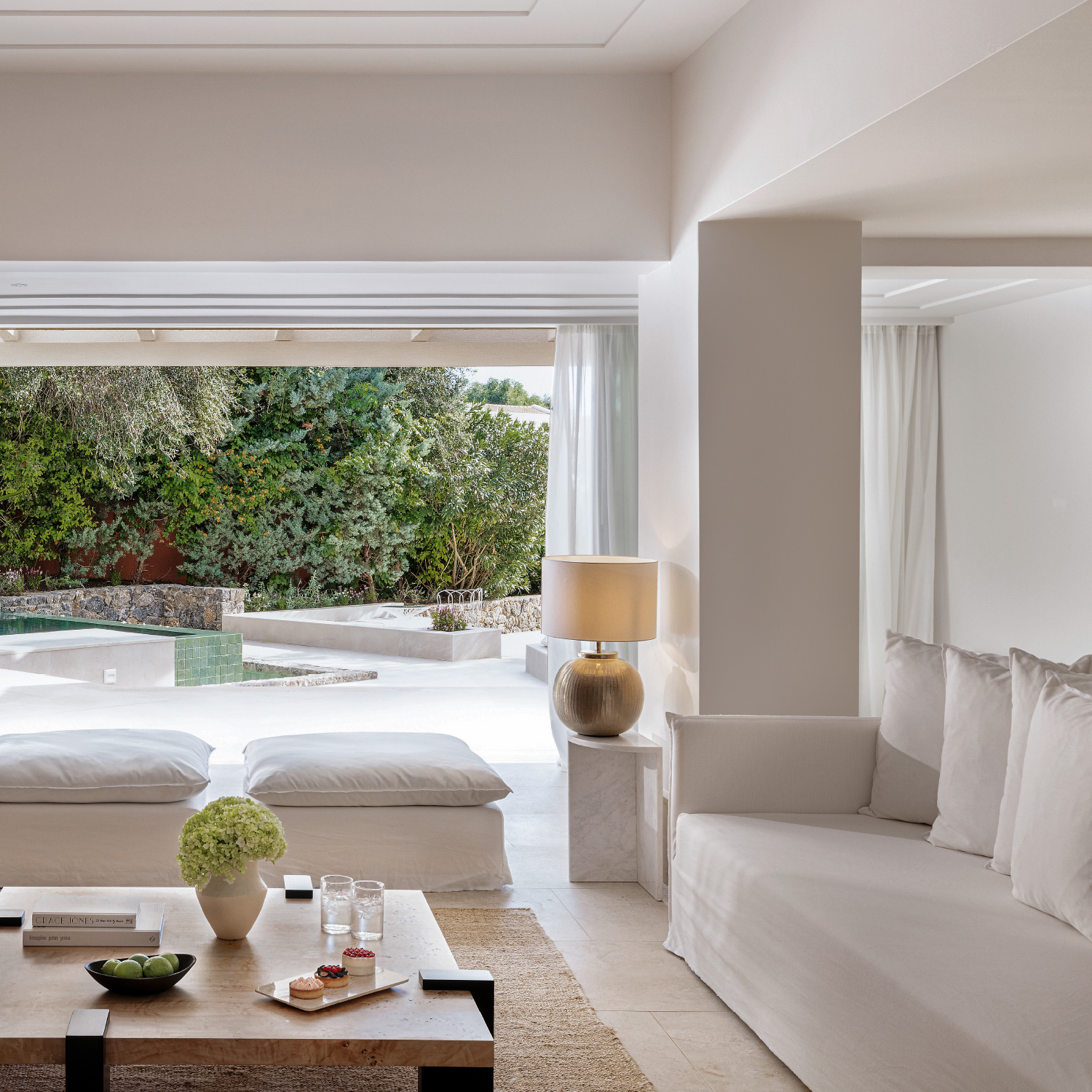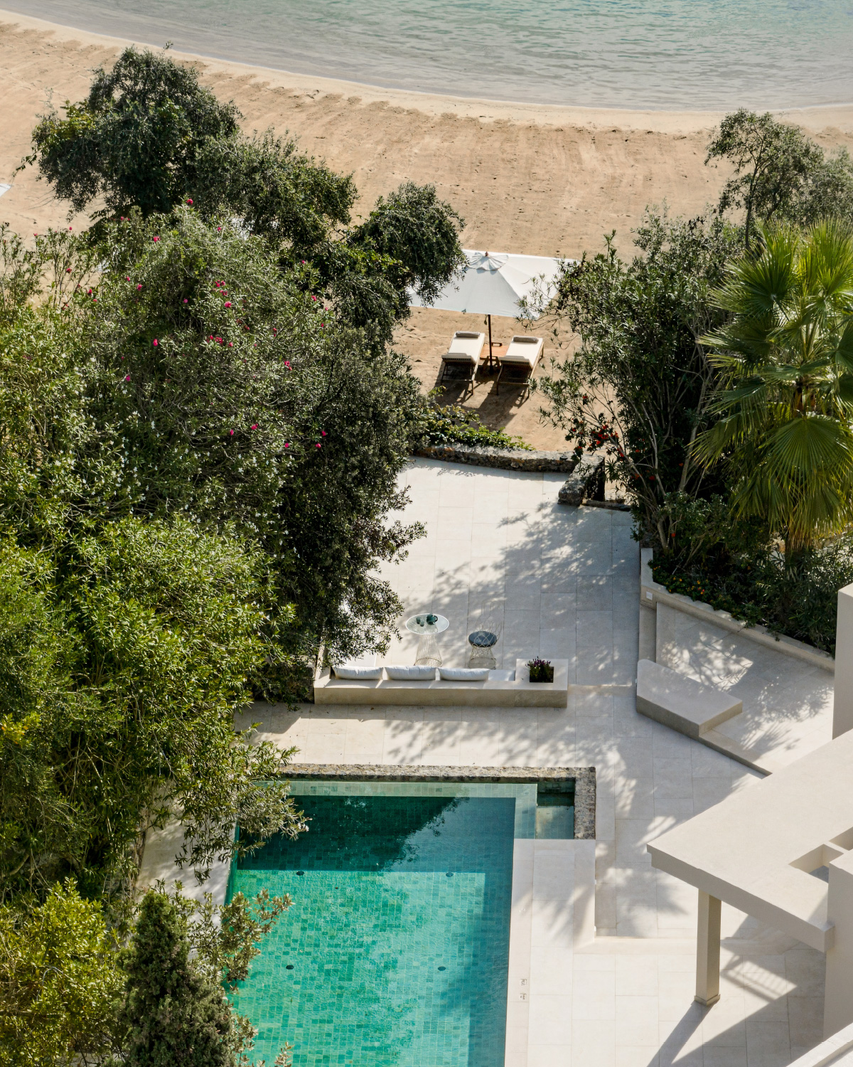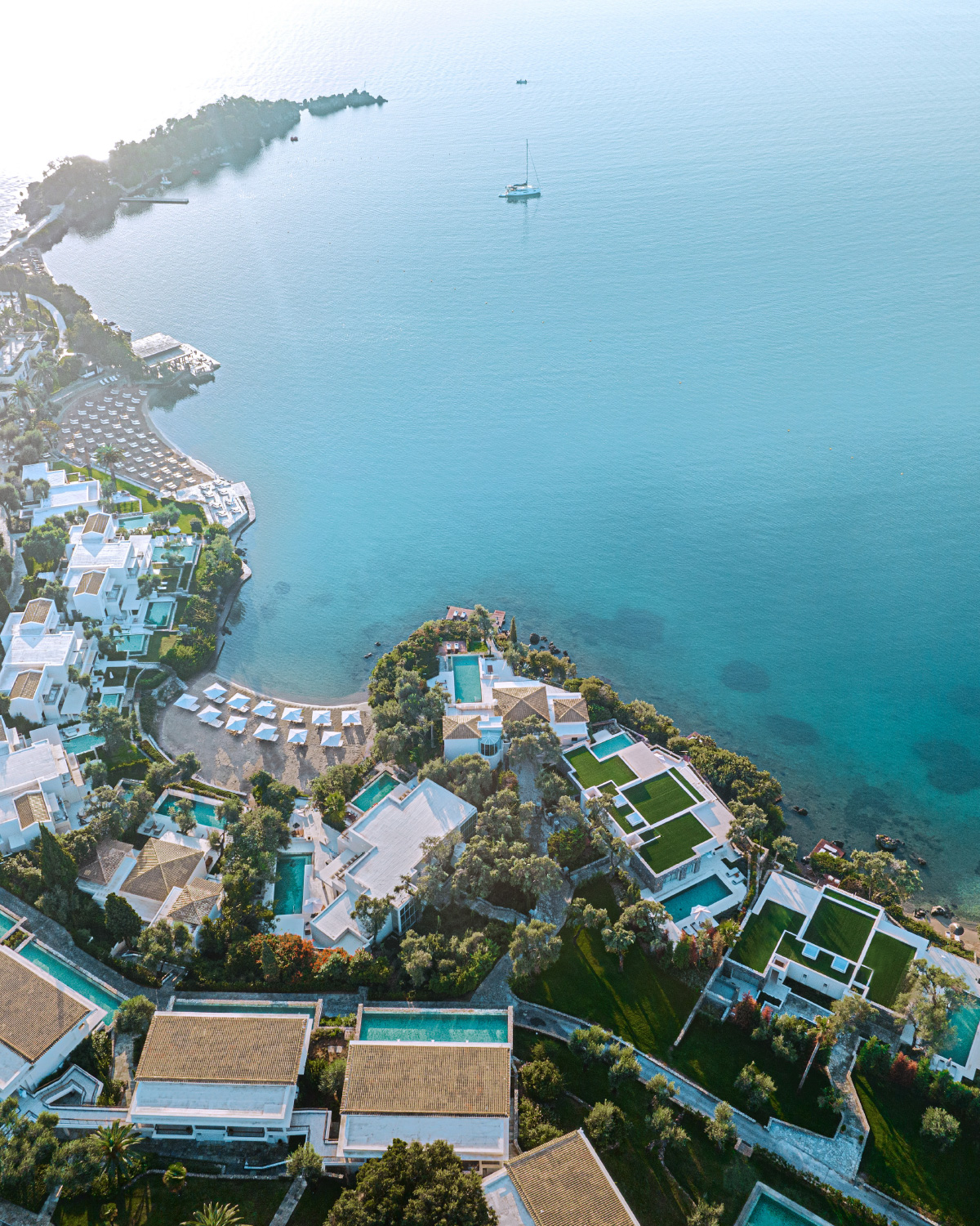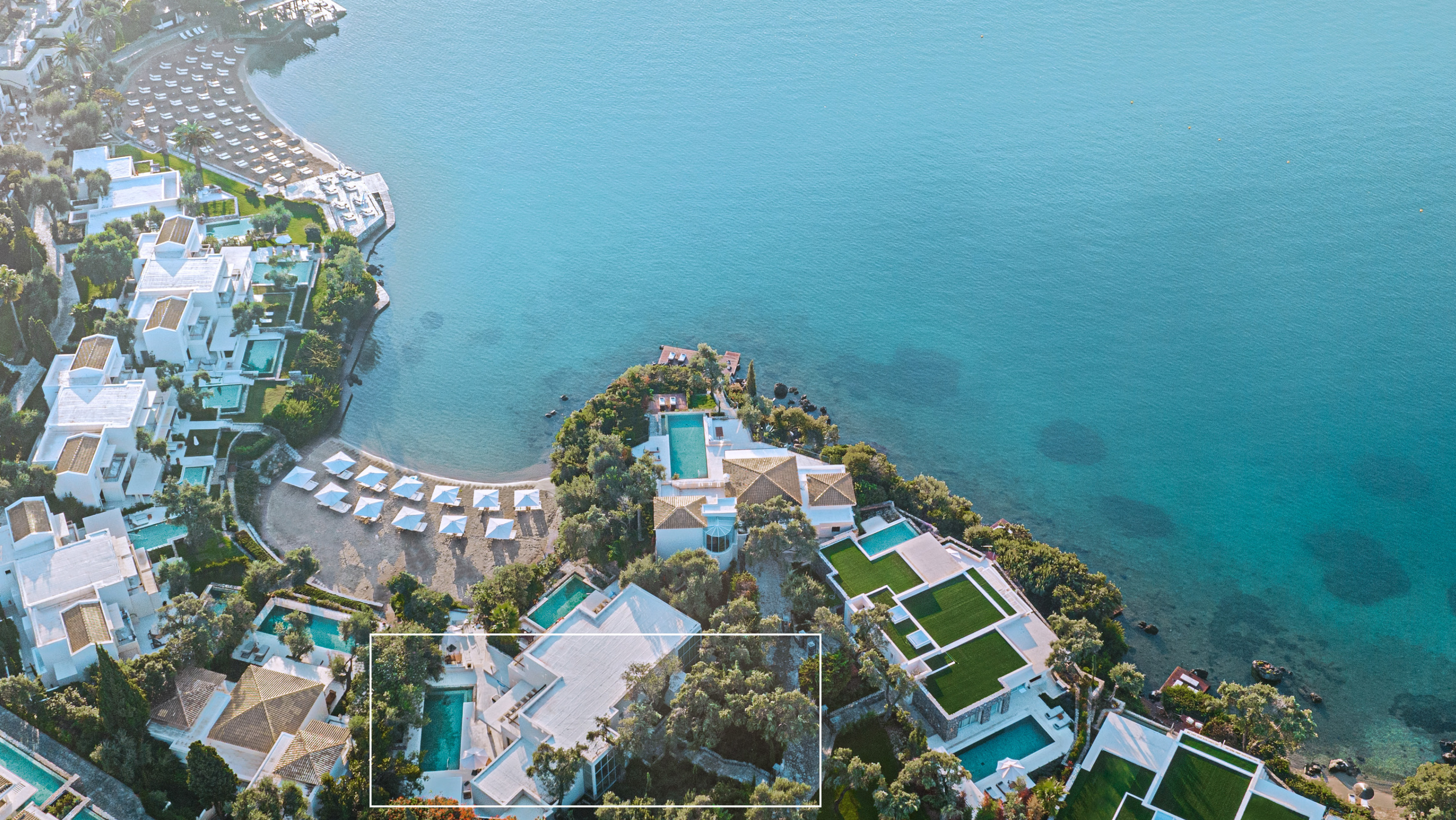 On a sun-drenched tip of Kommeno Peninsula, our dream villa is a welcoming place where horizons of blue mix with chic contemporary décor. The living room’s high ceilings and large windows bring you the Ionian breeze and azure sea views. Entertain al fresco on your vast garden terrace and your own swimming pool framed by lawns, lush vegetation and direct access to the beach.