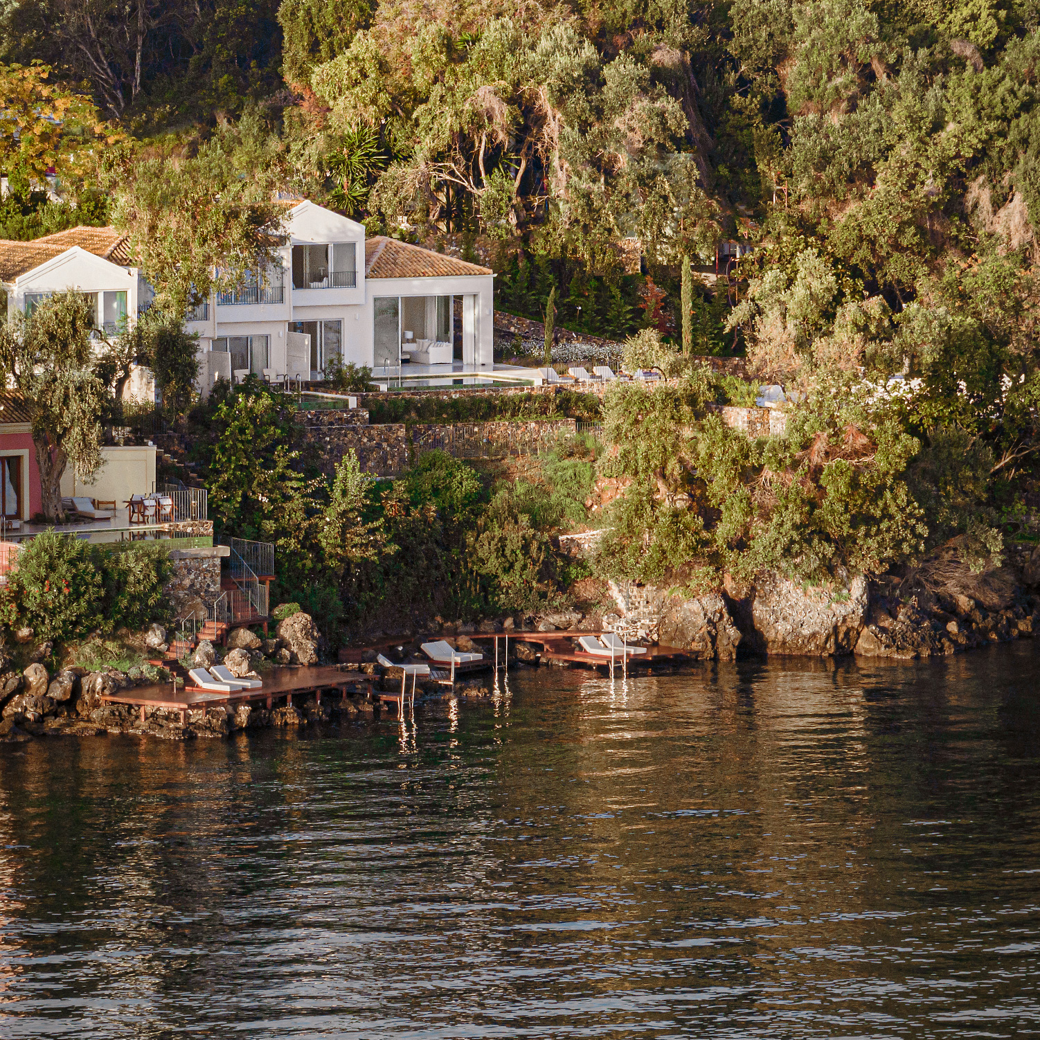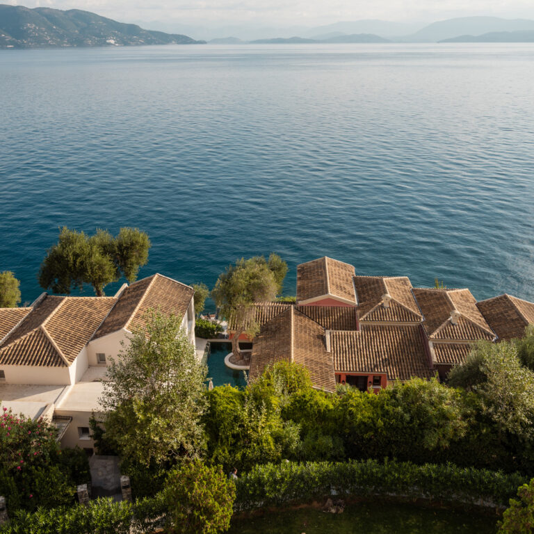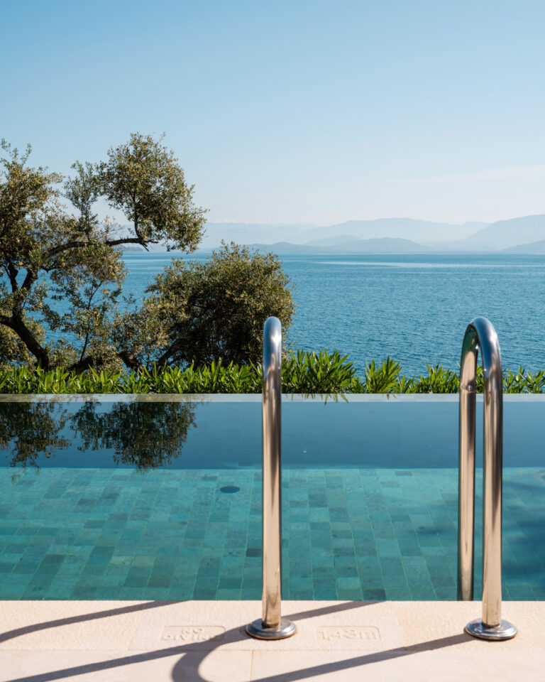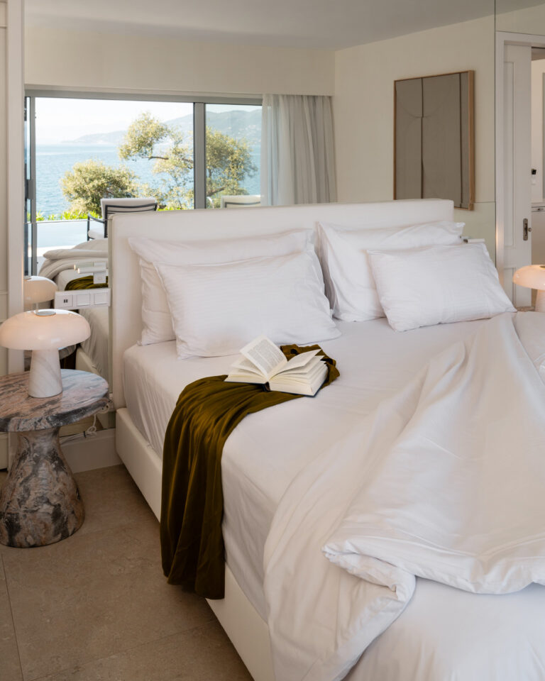 The essence of La Bella Vita, Palazzo di Lago sets on a cliff boasting a private terrace with unparalleled views of the Ionian Sea. Brand new elegant décor featuring serenity’s white and luxury details. Tucked away among cypress trees with a private pool and an outdoor lounging area exuding Ionian charm. A private wooden deck to the pristine sea is the perfect setting for relaxation, sunbathing or simply sea gazing.