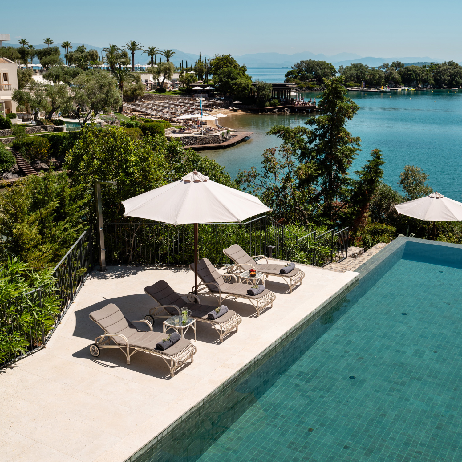The Palazzo Imperiale occupies a small private peninsula within the hotel. A superb waterfront location and elegantly appointed quarters, in the Italian/Corfiot regency style, combine to offer ultra-premium accommodations for discerning guests. Luxurious lounges, perfectly combined with the alfresco lifestyle provides the experience of the total exclusivity during your vacation.