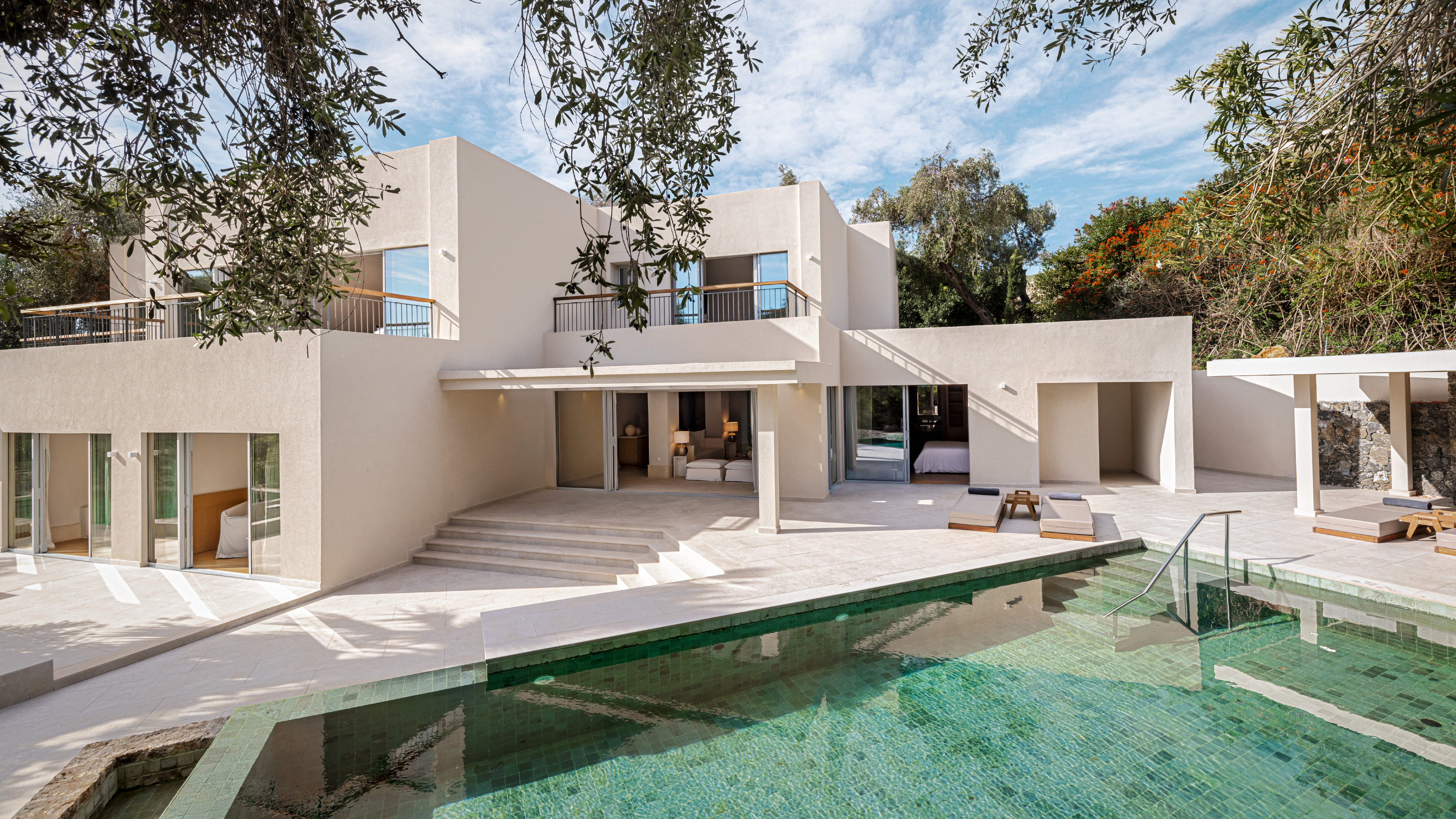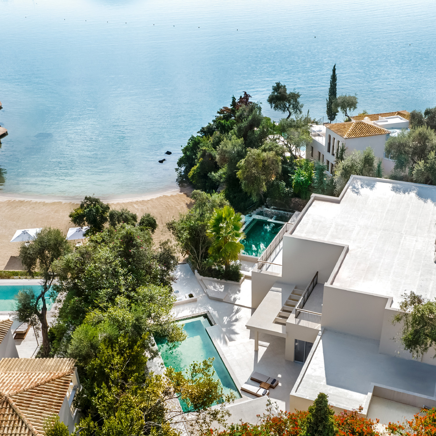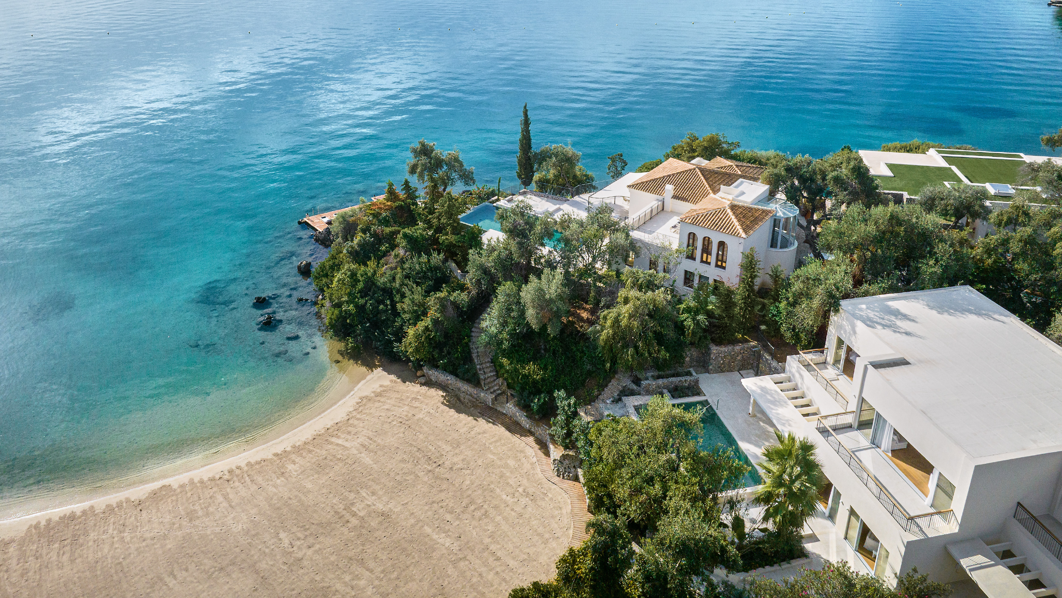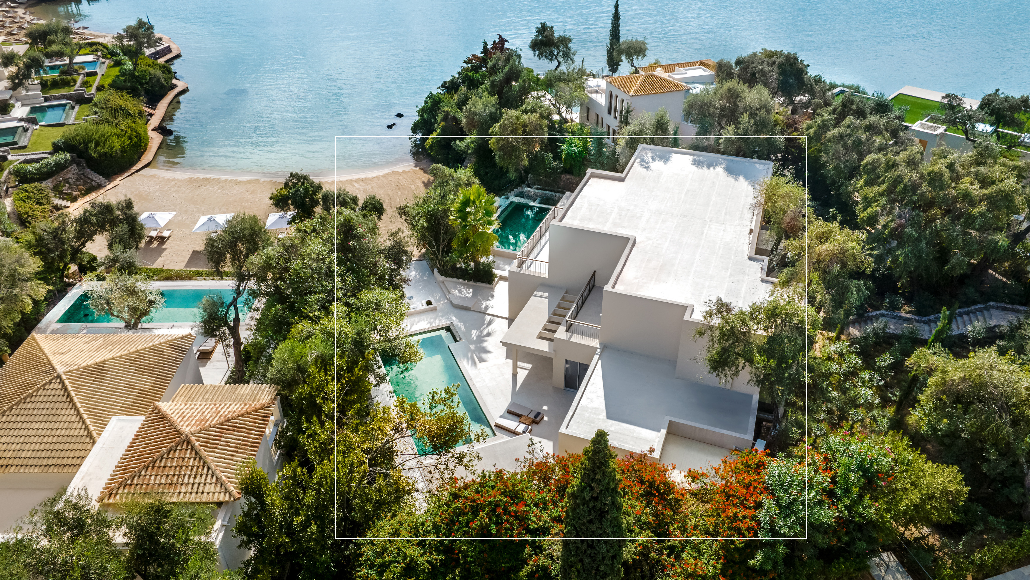 6 Bedroom Beachfront Villa is your own Corfiot Mansion in the Ionian countryside on villas’ beach among olive and cypress trees. Brand new décor, white marbles and exclusively chosen furniture fill the modern-styled areas with luxury.