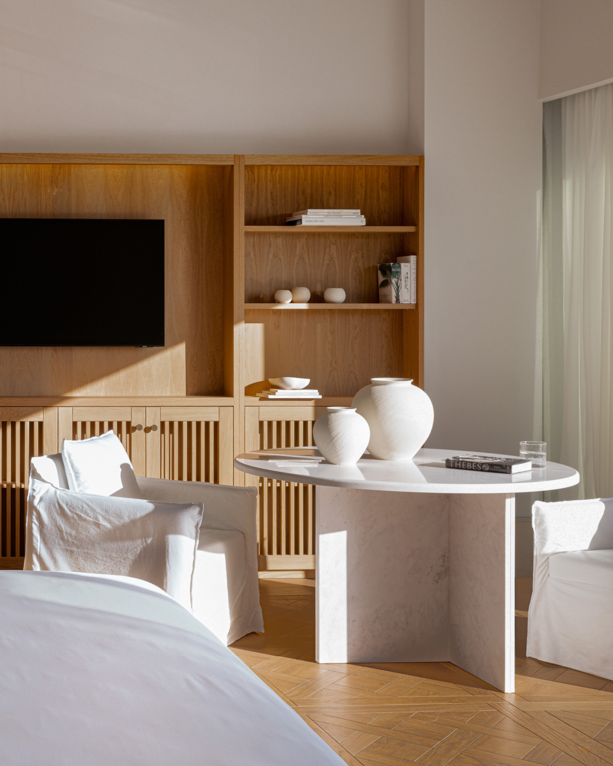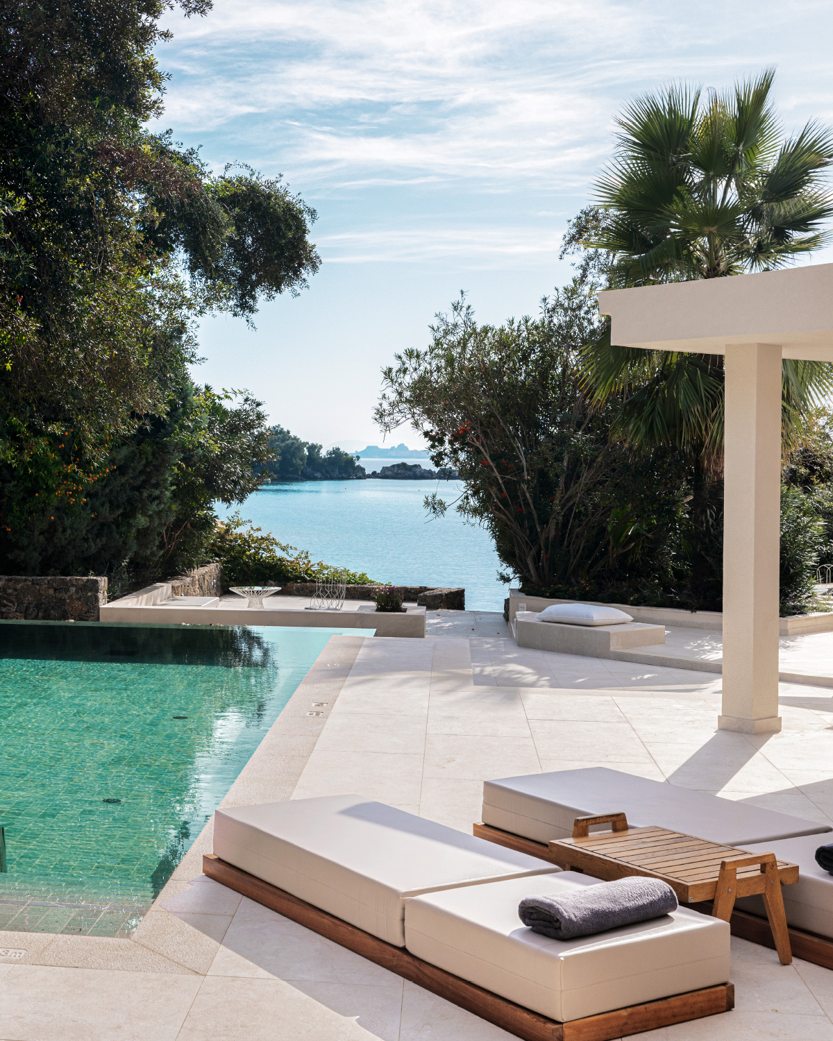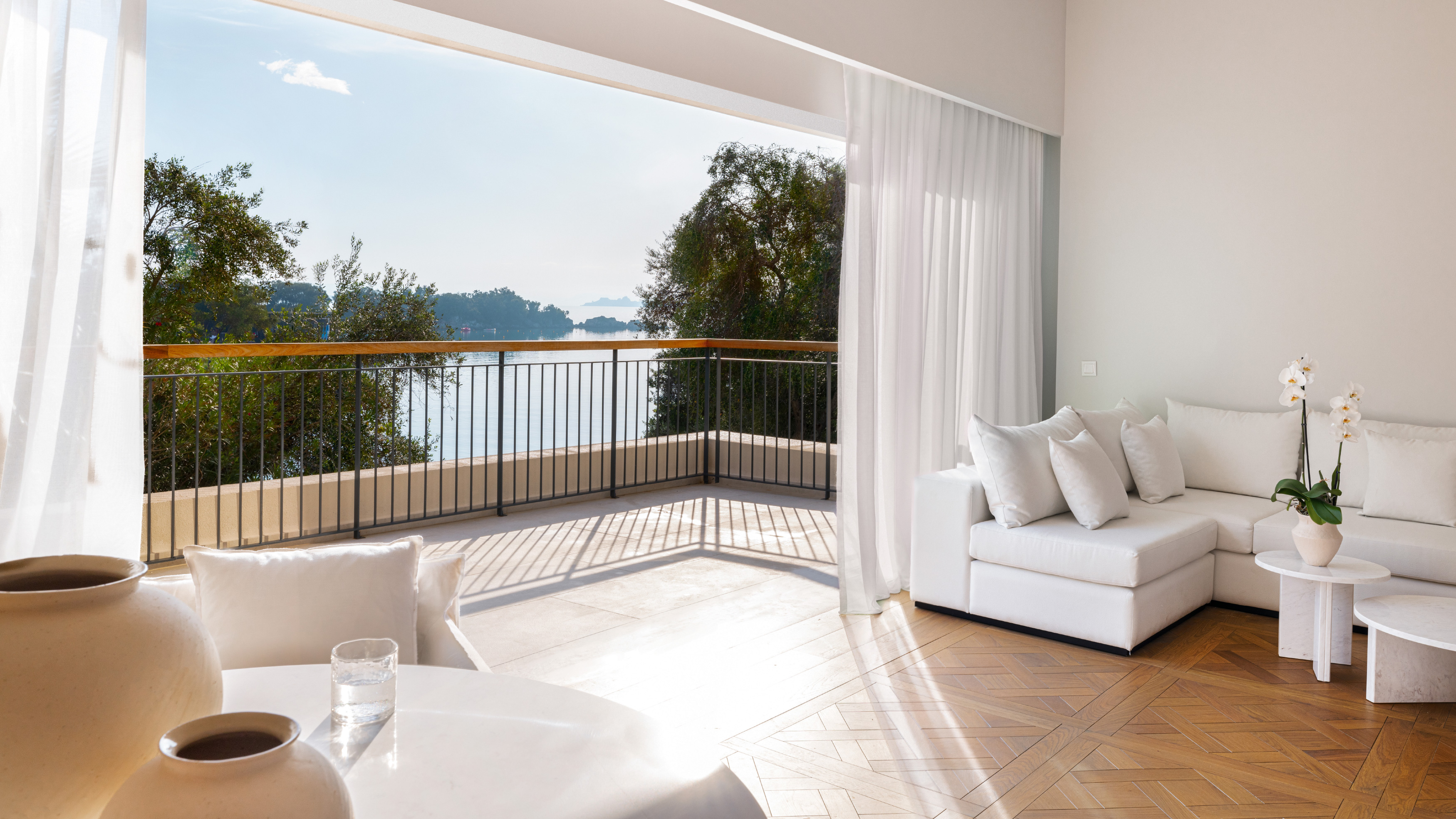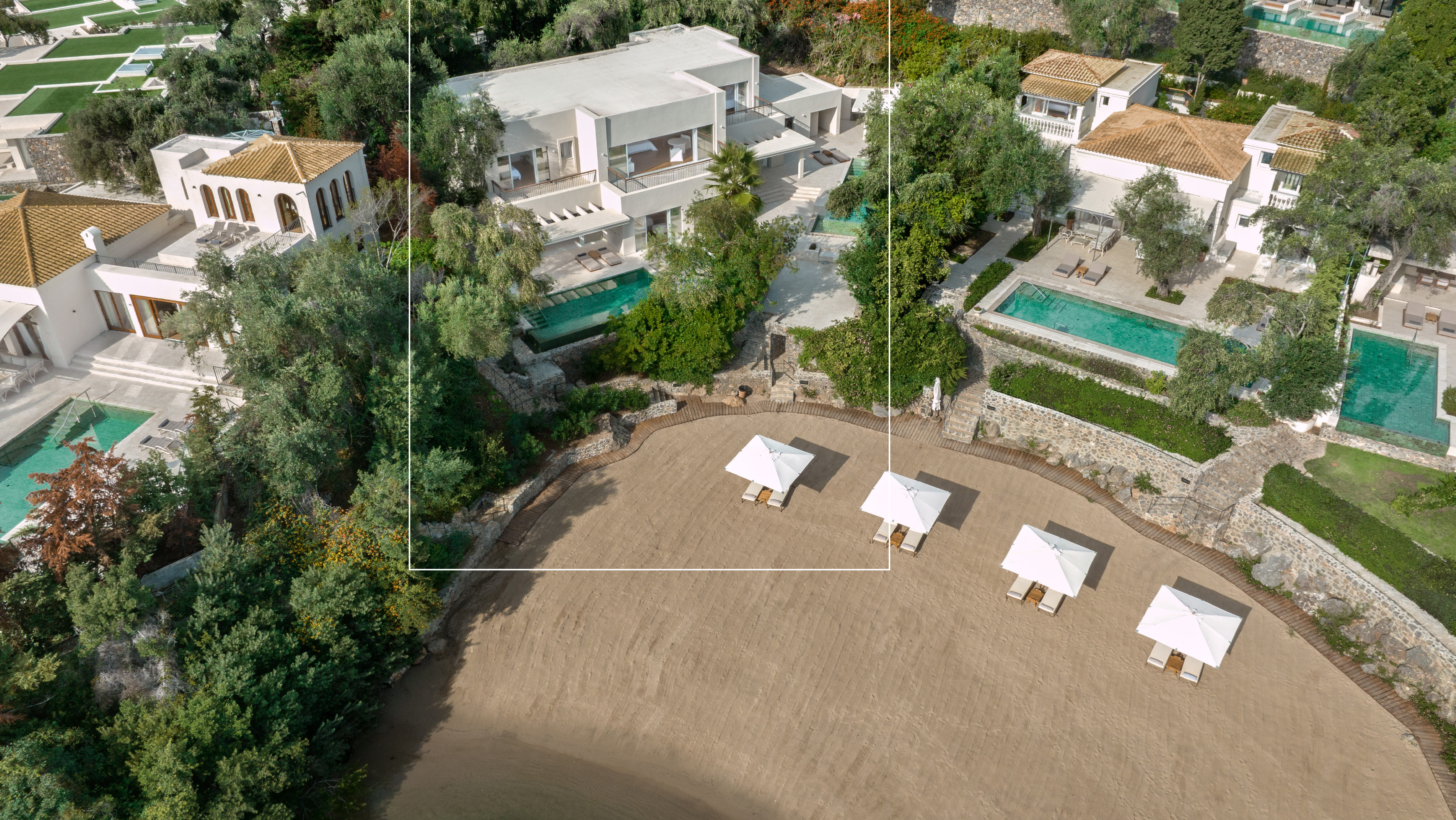 6 Bedroom Beachfront Villa is your own Corfiot Mansion in the Ionian countryside on villas’ beach among olive and cypress trees. Brand new décor, white marbles and exclusively chosen furniture fill the modern-styled areas with luxury.