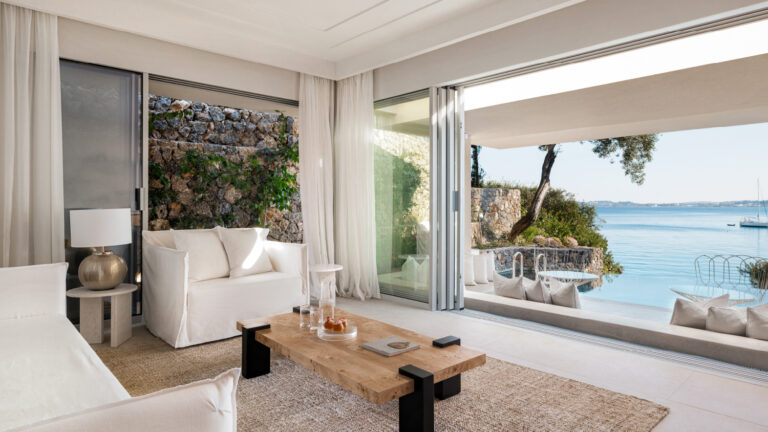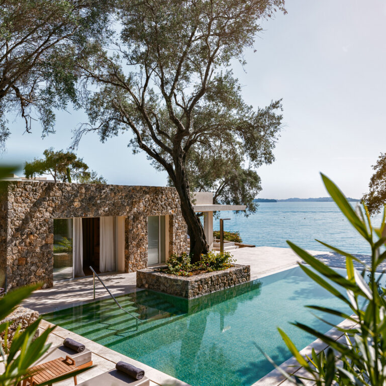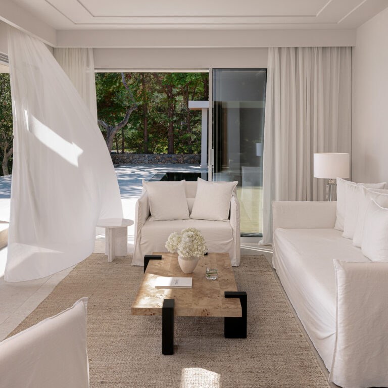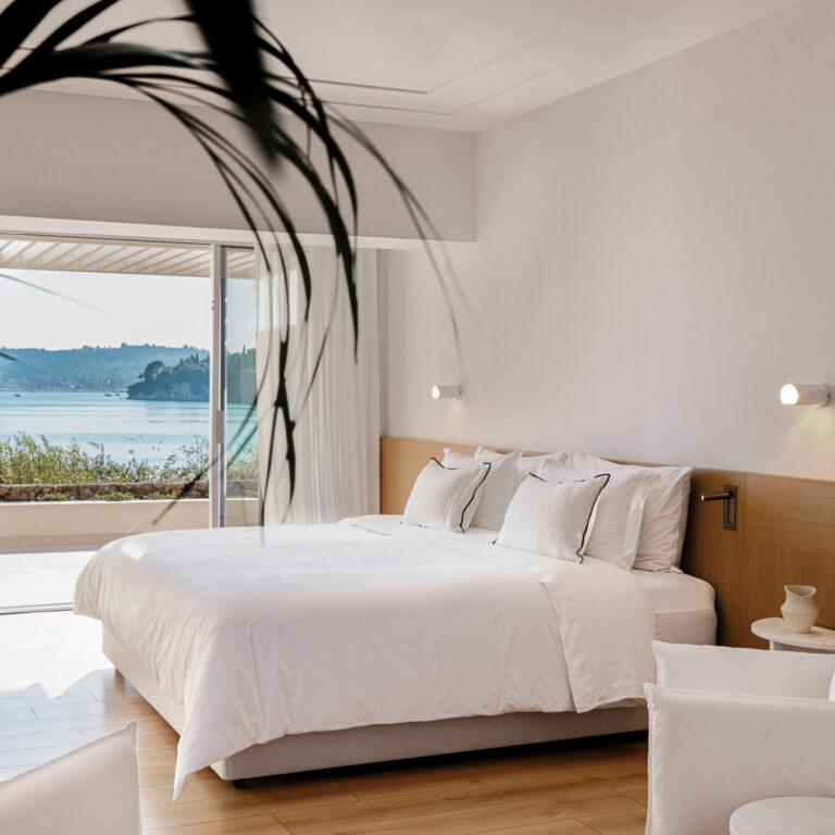 Make the most of the Ionian bellezza in your Two Villa Residence, tucked away among the pines and olive trees of the Kommeno Peninsula. Enjoy total seclusion and relaxation, spending days lounging by the two private pools, sunbathing in the gardens, or on your own private beach. Enjoy an afternoon nap in your spacious white bedroom and wake with the view of the endless Ionian blue.