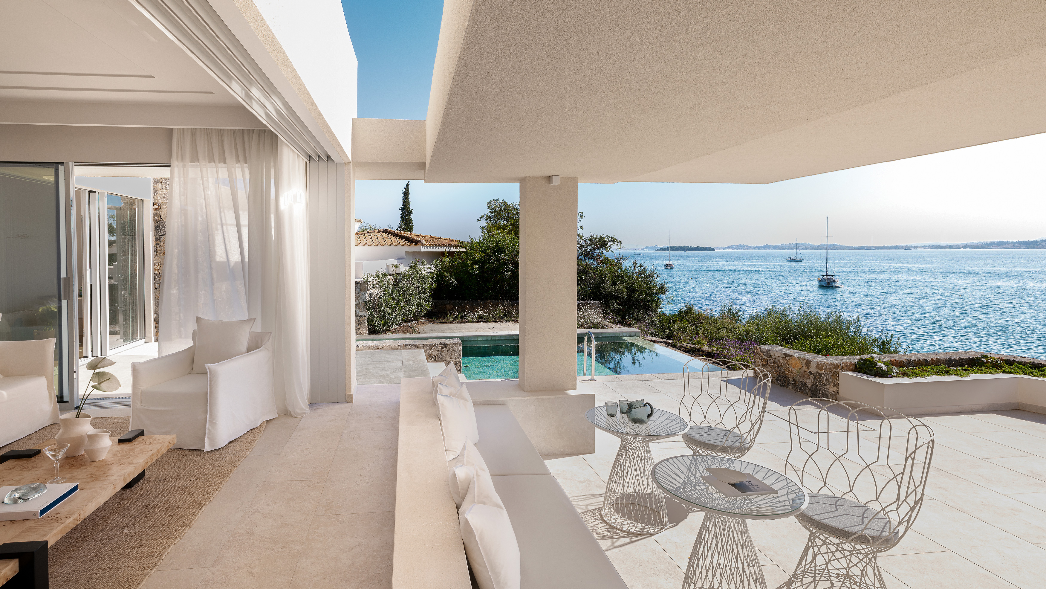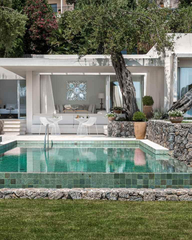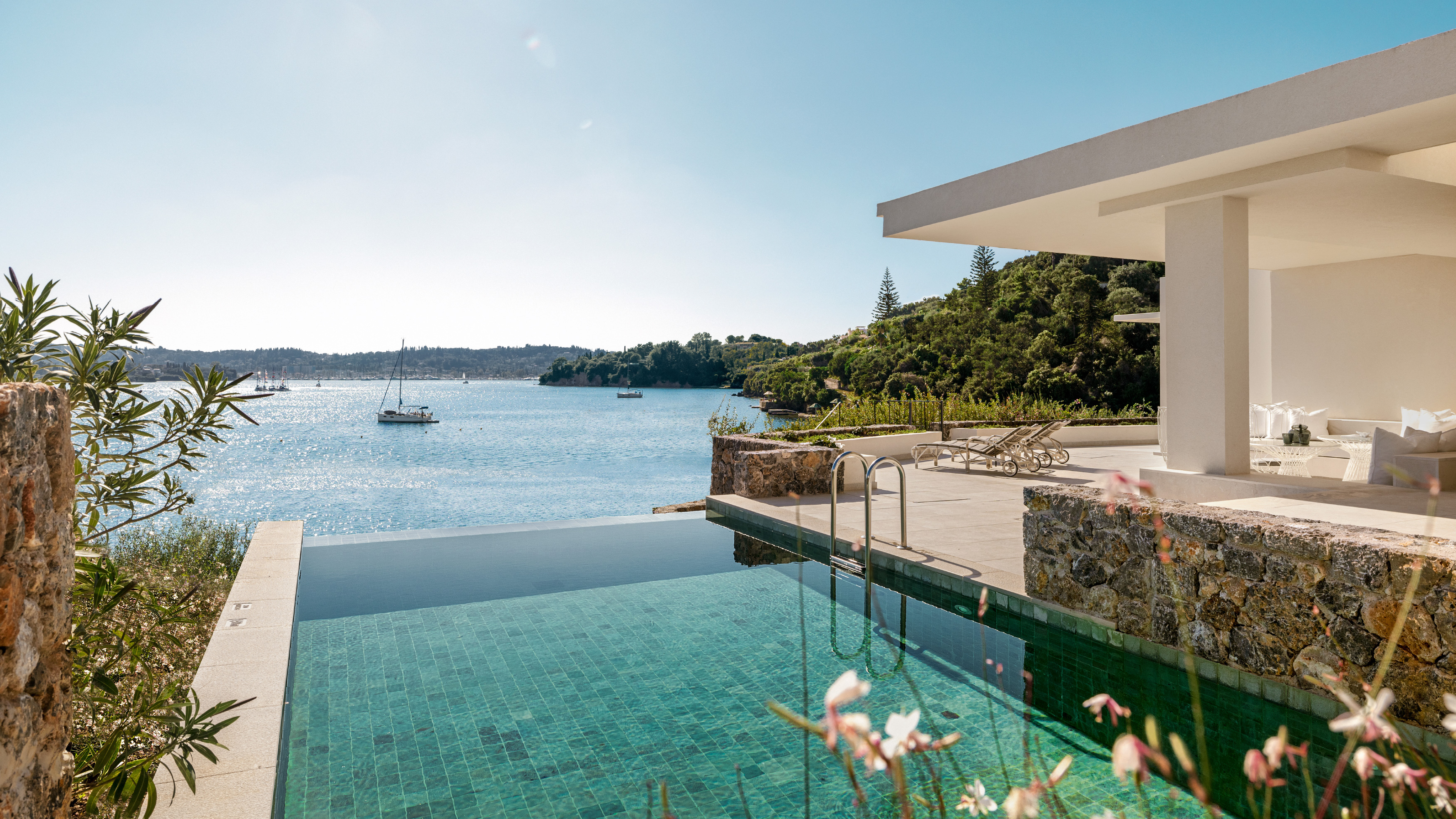 Modern and posh, yet simple and ample… The newly renovated Villa Waterfront with Private Pool is the epitome of easy elegance. White tones decorate the interiors combined with discrete but luxurious details and materials… Generous living space with separate sleeping quarters make this accommodation your private haven in the Ionian.