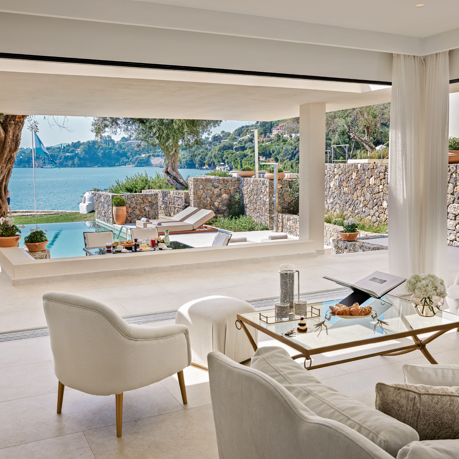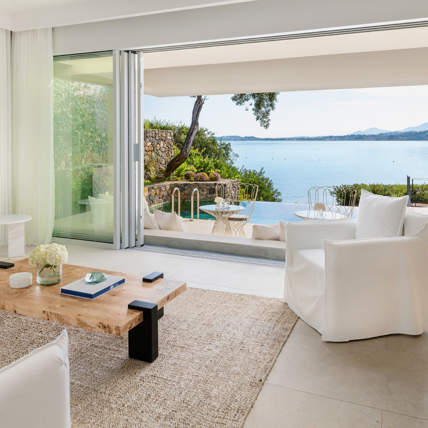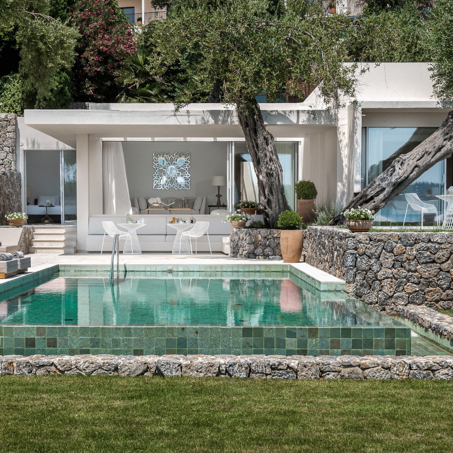 Modern and posh, yet simple and ample… The newly renovated Villa Waterfront with Private Pool is the epitome of easy elegance. White tones decorate the interiors combined with discrete but luxurious details and materials… Generous living space with separate sleeping quarters make this accommodation your private haven in the Ionian.