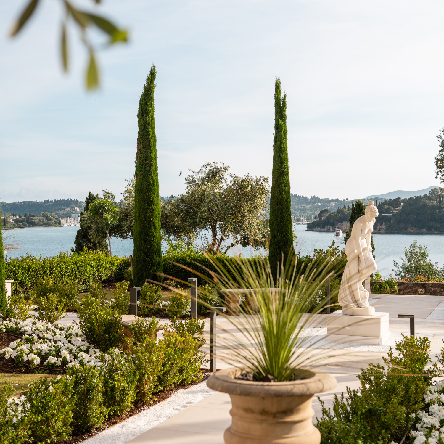 Kerkyra, the island’s namesake, is the daughter of the river god Asopos. Our spa concept and treatments are inspired by Greek river gods and nymphs, with statuary and colors reminiscent of water and the luminescence of the water gods.