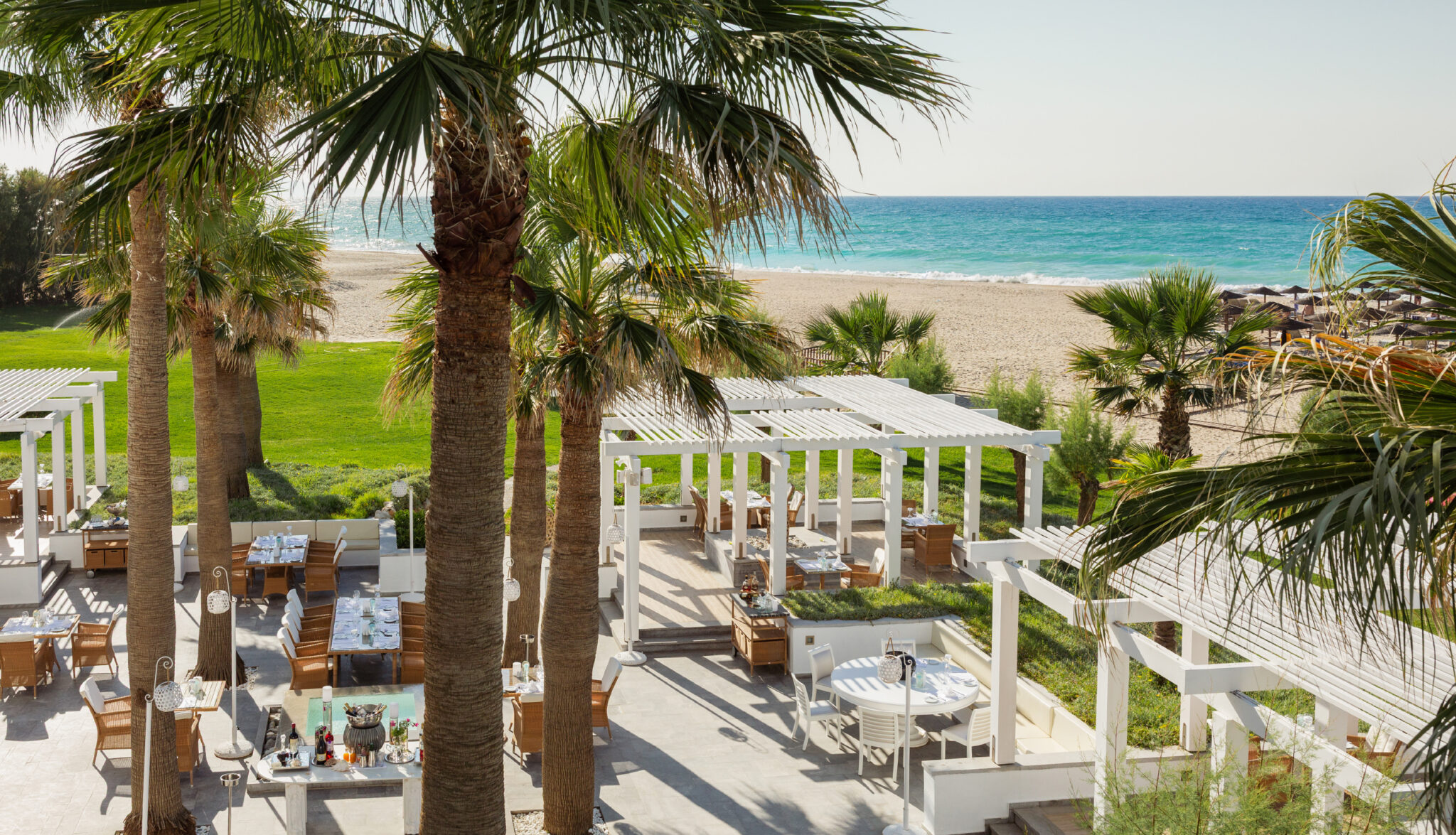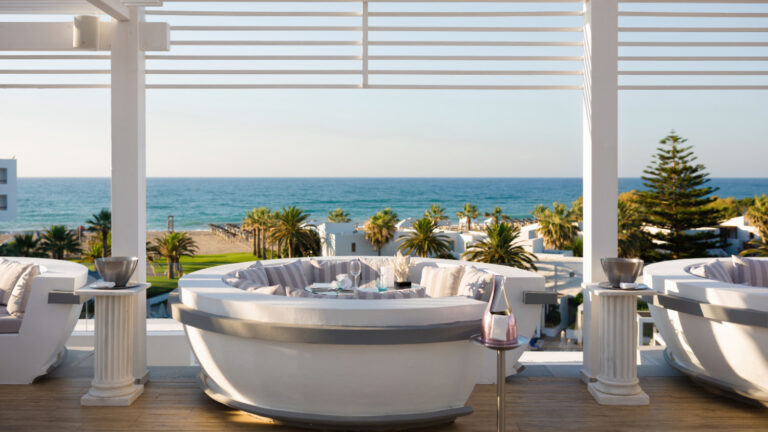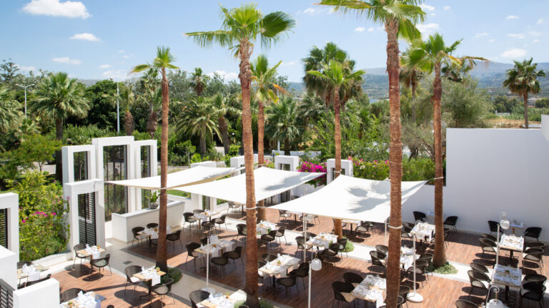 Sky Bar Restaurant – Located at the highest point of the resort – delivers an elegant a la carte, adults-only dining experience set against sweeping panoramic views of the Aegean Sea. Indulge in a thoughtfully curated menu and premium cocktails in a sophisticated setting.