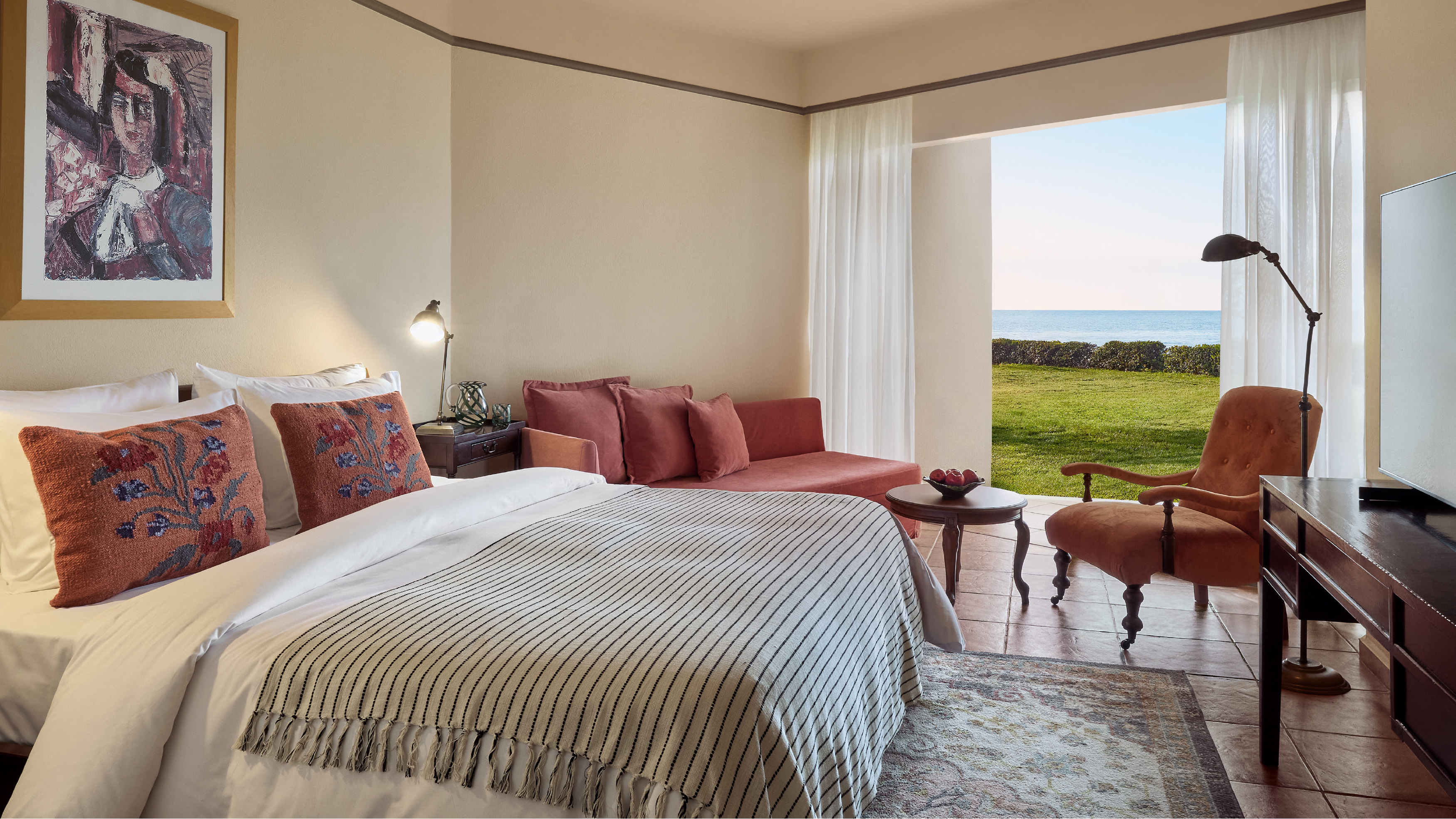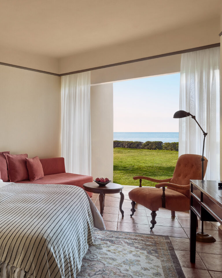 These well-appointed guestrooms feature stylish furnishings and calming earth-toned accents, adorned with luxurious fabrics. Step outside to your veranda and immerse yourself in the surrounding garden’s serenity as you marvel at sweeping sea views. Perfect for those who appreciate a relaxing morning and the natural beauty of the resort’s immersive greenery.