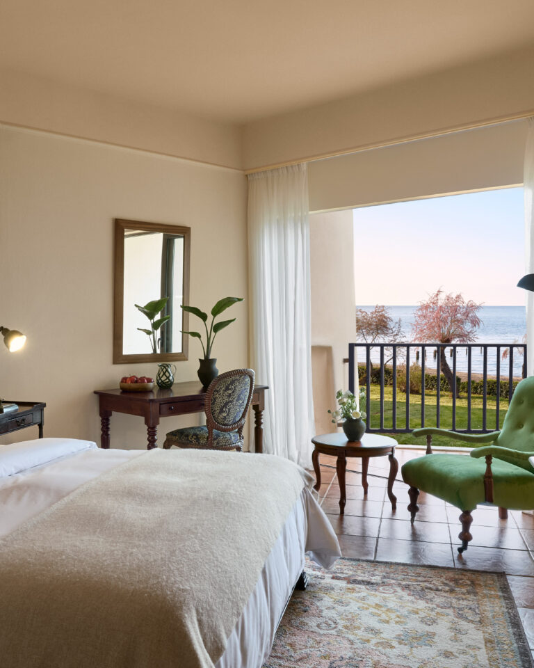 These well-appointed guestrooms feature stylish furnishings and calming earth-toned accents, adorned with luxurious fabrics. Step outside to your veranda and immerse yourself in the surrounding garden’s serenity as you marvel at sweeping sea views. Perfect for those who appreciate a relaxing morning and the natural beauty of the resort’s immersive greenery.