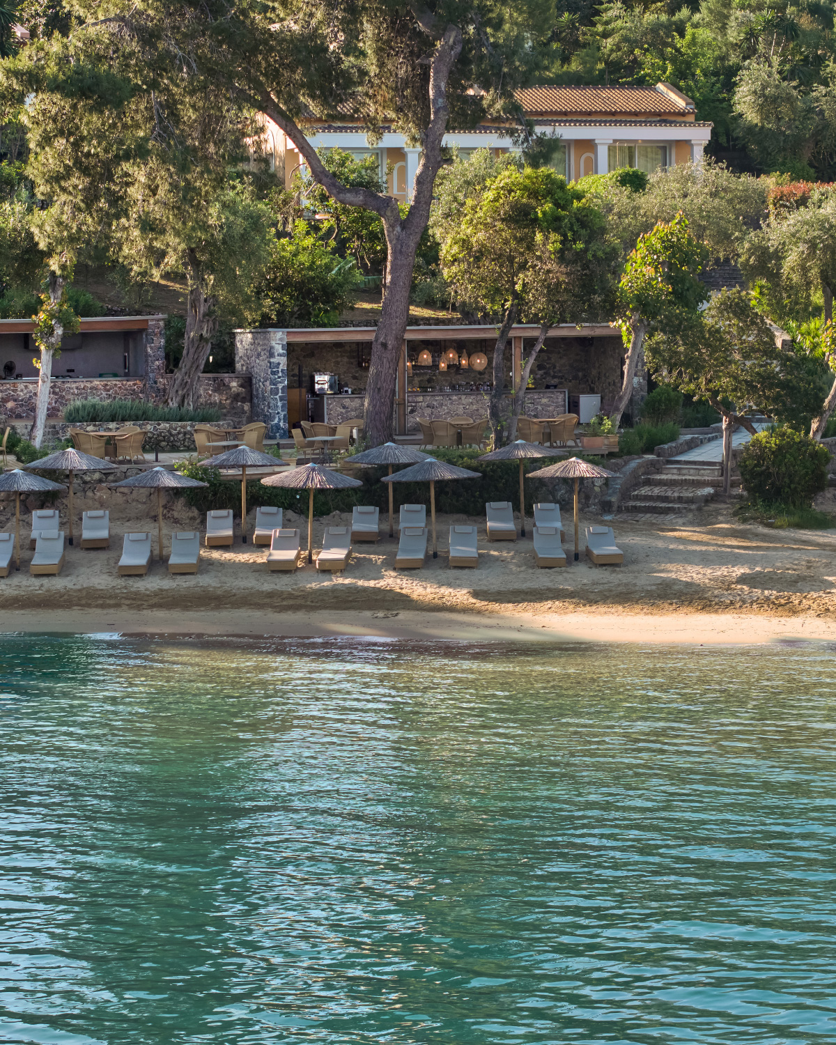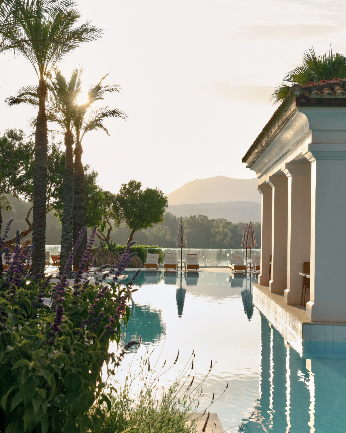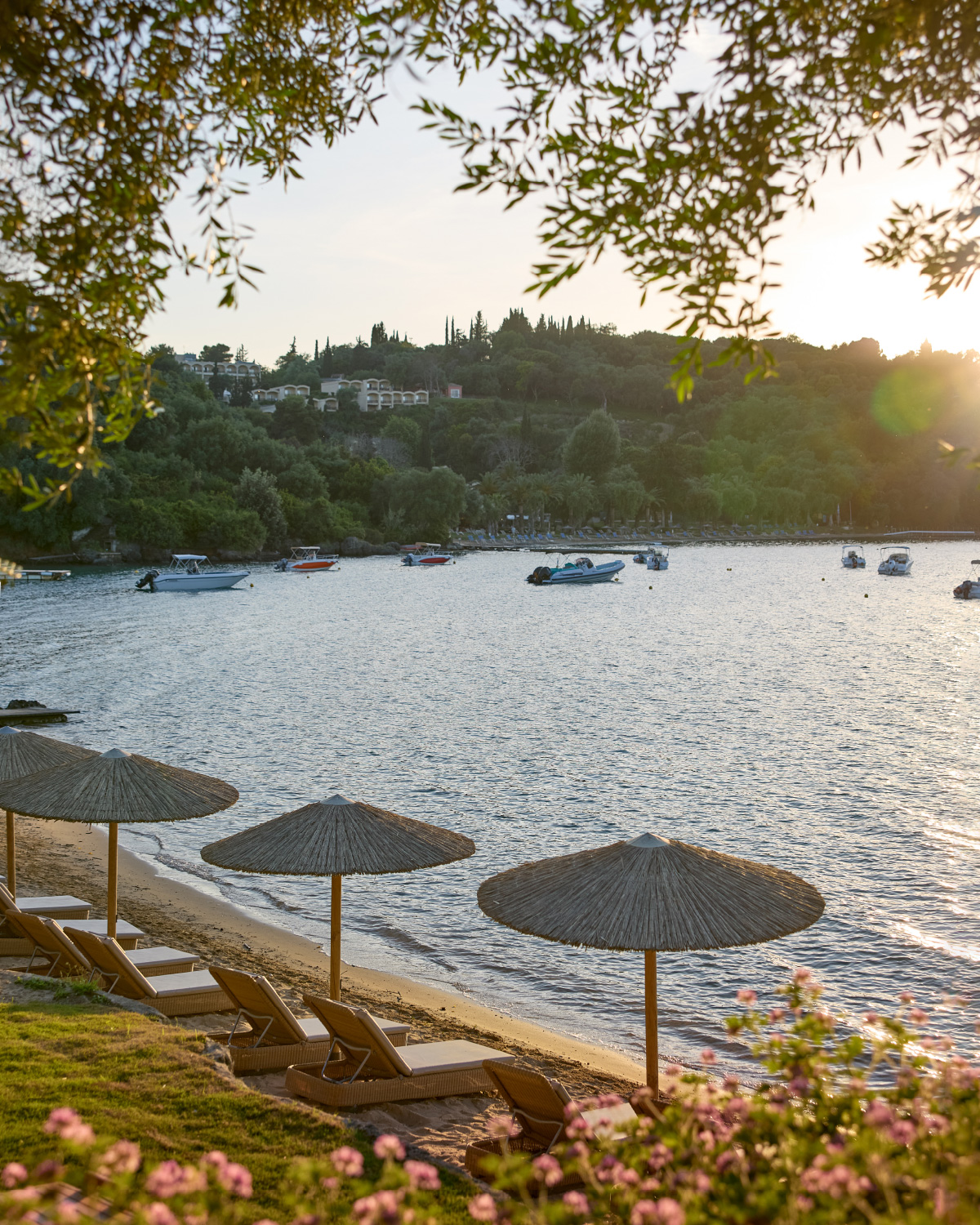Gloriously positioned on the enchanting Kommeno Peninsula, Grecotel Eva Palace is a realm of romance and allure, where lush cypress gardens and olive groves meet the embrace of two shimmering seas. Wrapped in perfumed, exotic gardens, this idyllic beach luxury resort is a private Eden. With a belle époque beach, sweeping views, and a giant pool jardin, this resort feels like a world of its own, yet lies just moments away from Corfu Town.