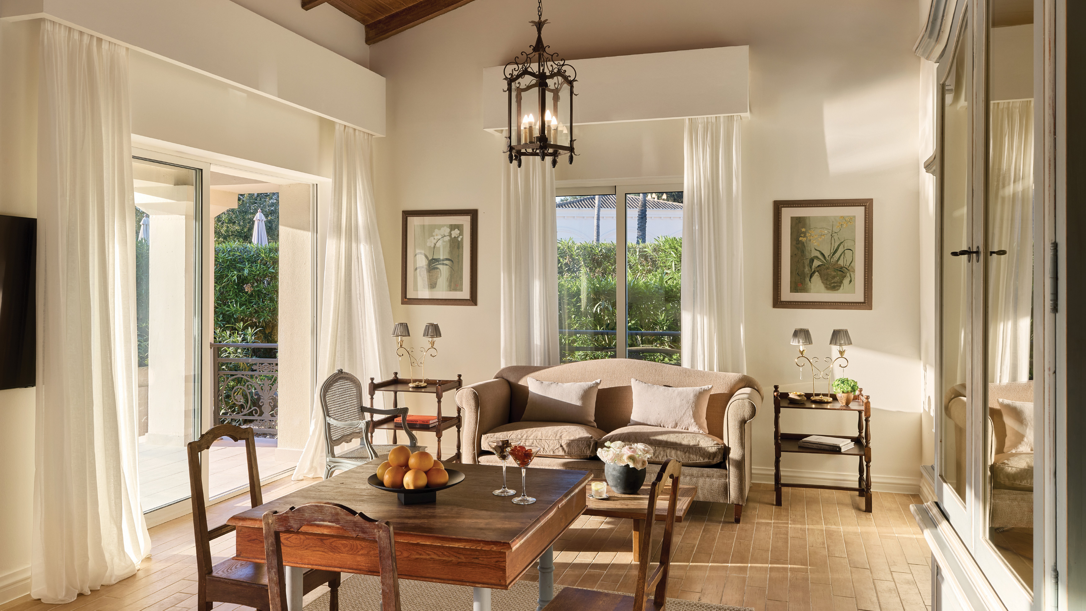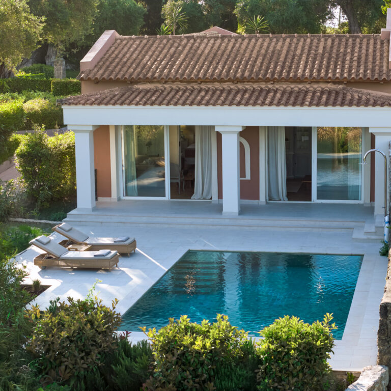 This one-bedroom villa is built around a luxurious living and dining room that opens onto a shaded terrace and pool. From the living room, enter the main bedroom suite with separate dressing area and bathroom.