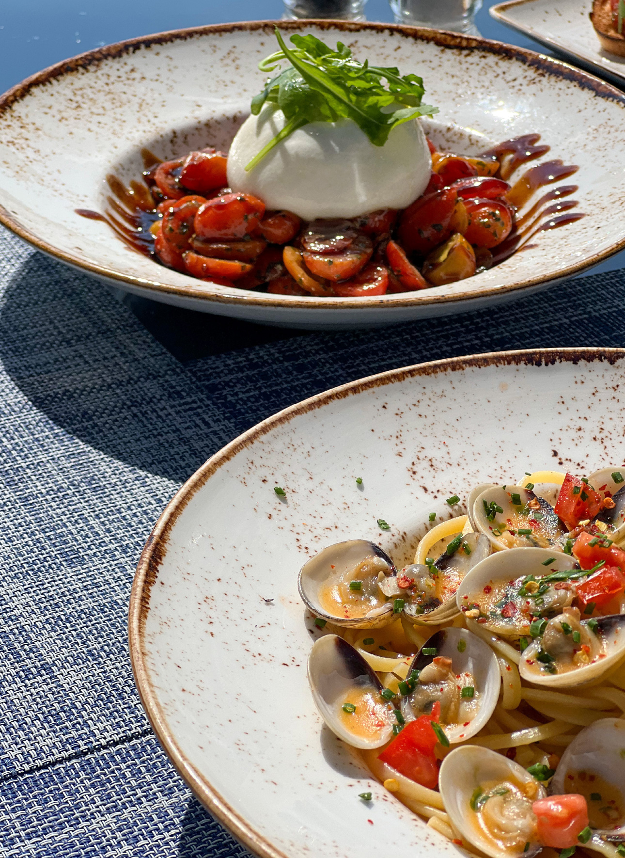At Grecotel Eva Palace, indulge in a world of culinary delights. From fresh Greek specialties and authentic Italian dishes to vibrant Asian fusion, each dining experience is unforgettable. Sip cocktails by the sea at the Beach Bar, savor buffet spreads at Mediterraneo, enjoy poolside meals at Il Melograno, or relish Italian flavors at La Contessa and sushi at Sushi & Sticks.