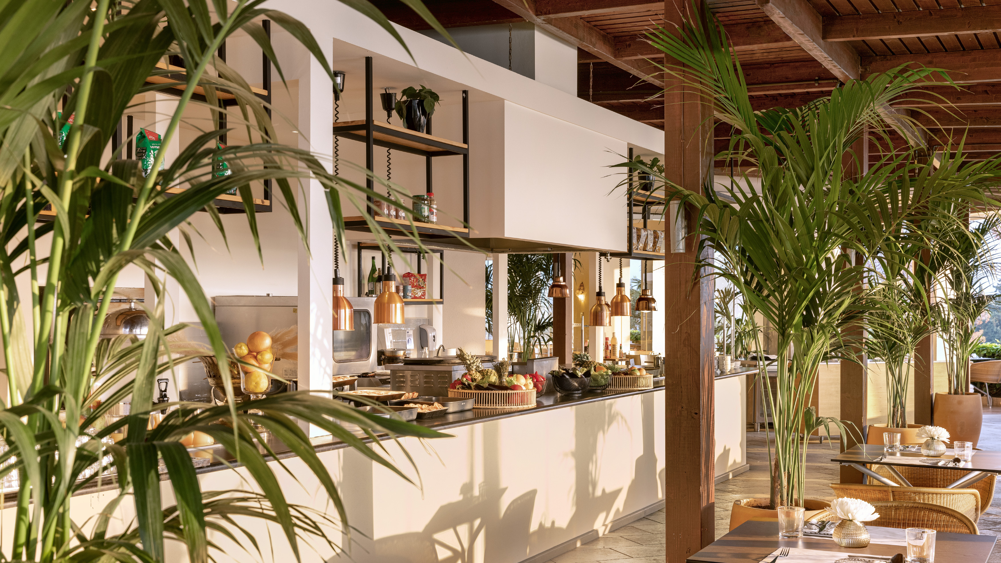 Suspended between sea and sky over a gently sloped cove, ‘Mediterraneo’ Restaurant pairs lavish cuisine with stunning views. The extensive breakfast and dinner buffets includes a variety of international dishes, and healthy and vegetarian options, while the breakfast spread features a fitness food corner and a selection of local delicacies. Evenings bring show-cooking and themed dining experiences for an extra touch of excitement.