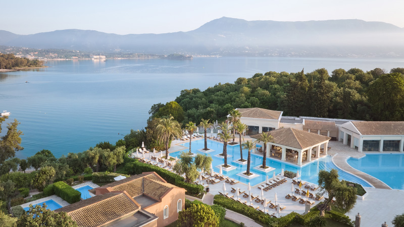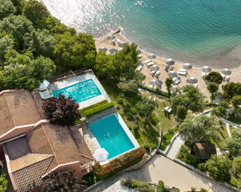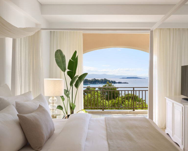 Set on Corfu’s exclusive Kommeno Peninsula, Eva Palace is a sophisticated seaside hideaway designed for tranquil escapes known for the best uninterrupted views. Surrounded by cypress gardens and endless sea views, it blends aristocratic charm, refined comfort, and a calm atmosphere just moments from Corfu Town.