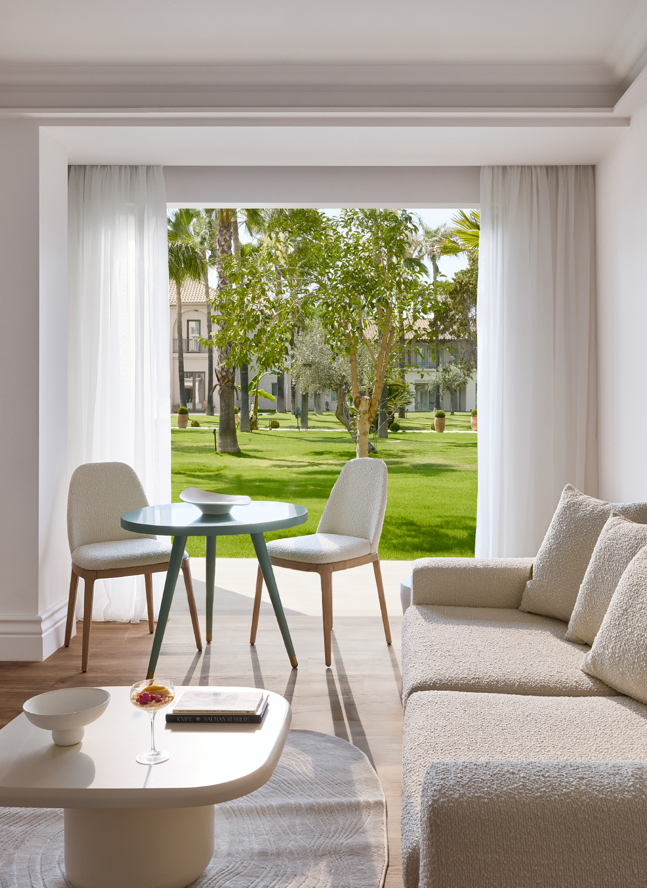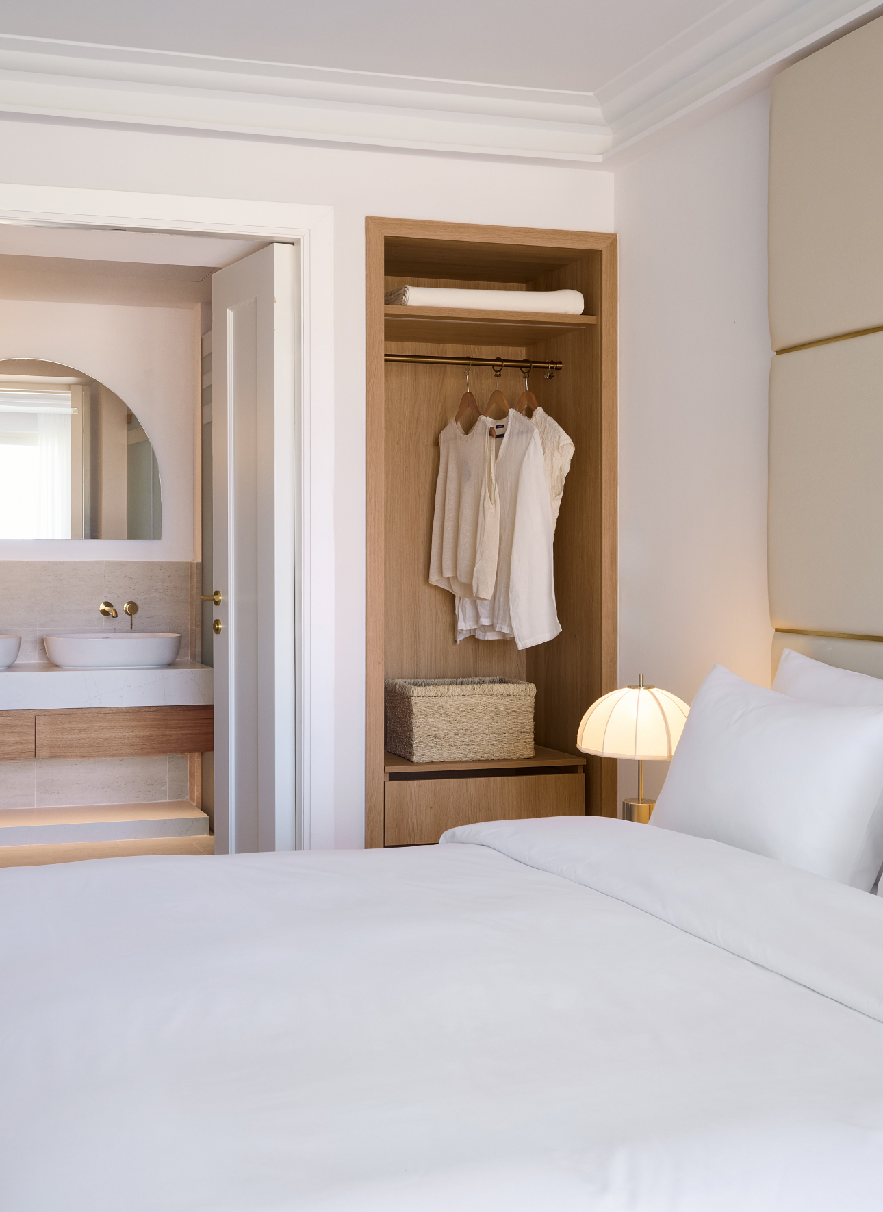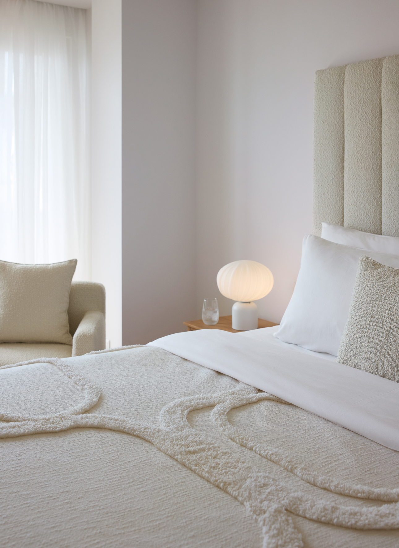 The gentle sea breeze and the coastline’s golden hues set the scene for your stay. Step onto your private balcony or lounge in sophisticated interiors, where plush furnishings and elegant details create a comfortable atmosphere.