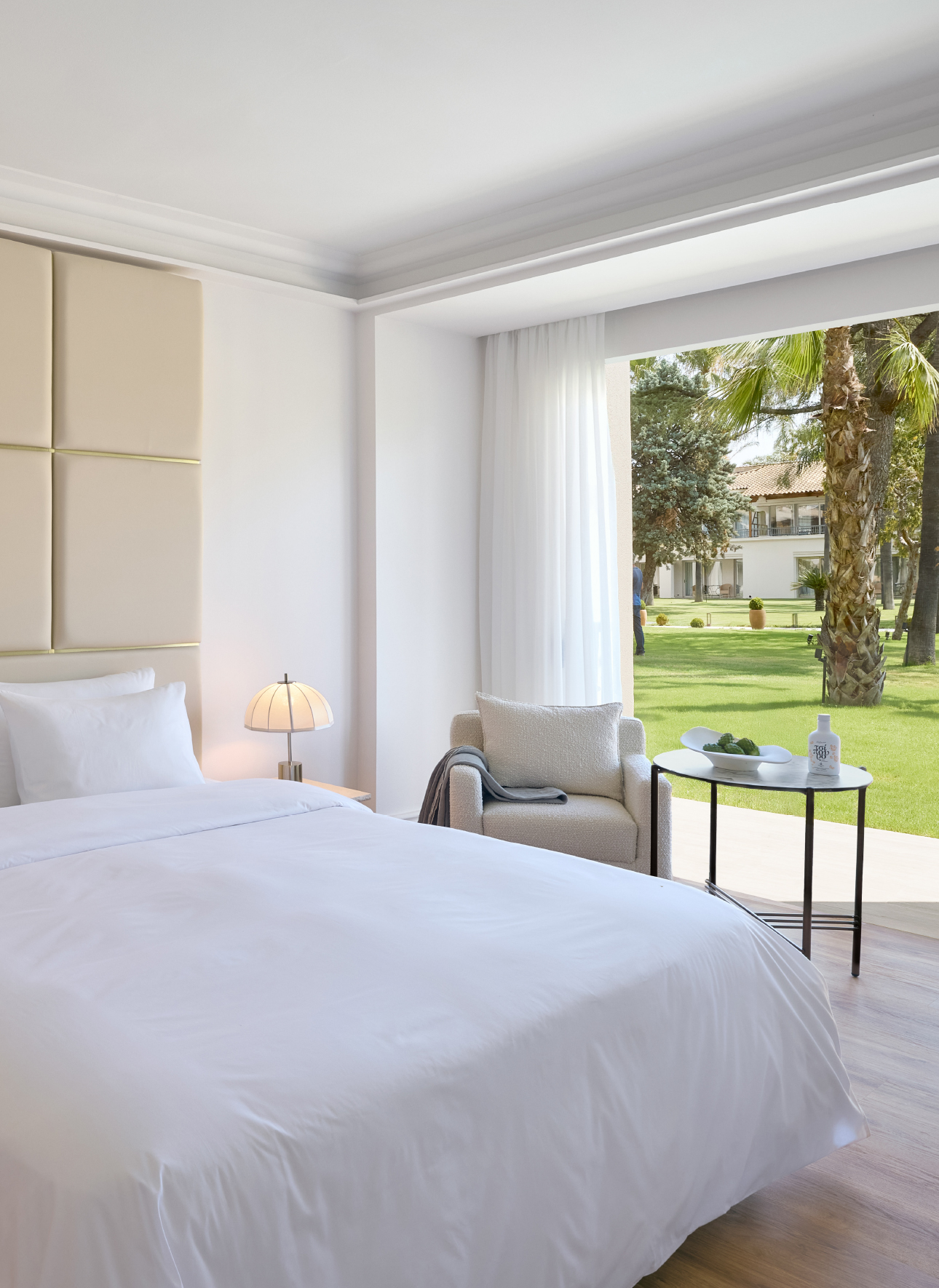 Hotel Filoxenia is designed as a timeless Seafront Estate inspired by the elegance of the past, infused with the beauty of its emerald gardens, and the infinite blue of the sea. Discover the selection of superior guestrooms, ideal for couples who wish a luxurious stay and the deluxe guestrooms, with beds facing the view, lavish bathrooms, separate wardrobes and private bar spaces. The family suites are wonderful accommodation choice for families of four or six people to spend their vacation comfortably. The collection of 2-bedroom suites are the ultimate family getaway right next to the pools & along the pristine beach. Spoil yourself at the seafront suites with dramatic views of mythical Taygetos mountain and the Messinian Gulf.