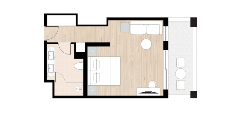 Bask in a setting designed to uplift and inspire. The elegant, open-plan space is wrapped in warm tones and effortless luxury. Floor-to-ceiling doors lead to a private balcony where vibrant gardens unfold before you, offering a picturesque escape which invites you to slow down and savor the moment.