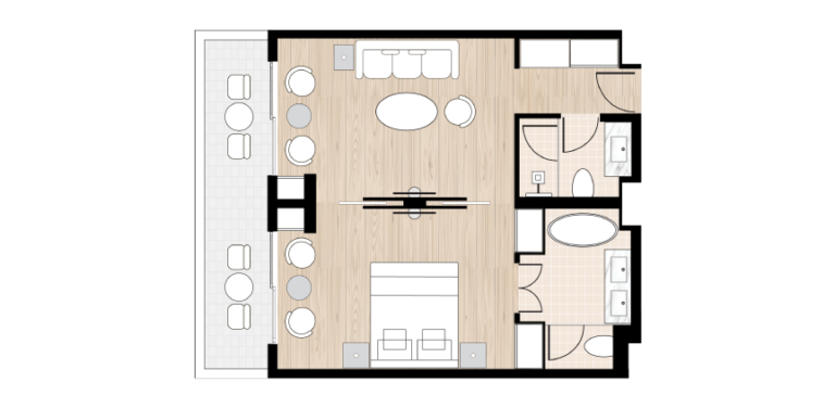A stylish escape with sweeping views of the shimmering sea and an ambiance of relaxed elegance. The private veranda is the perfect spot to sip your morning espresso, while the thoughtfully designed interiors ensure every comfort is at your fingertips.