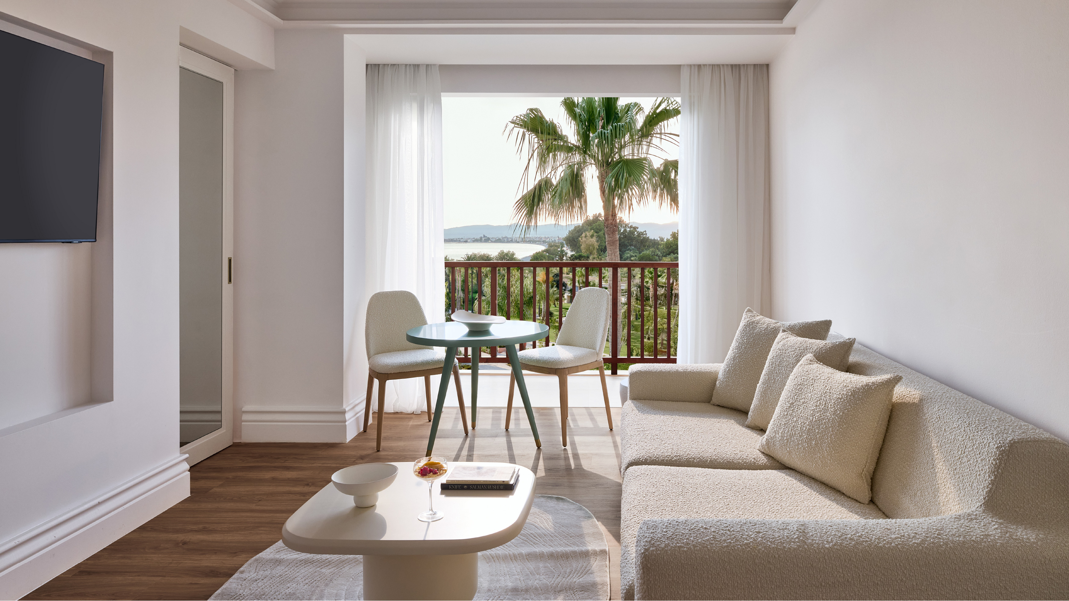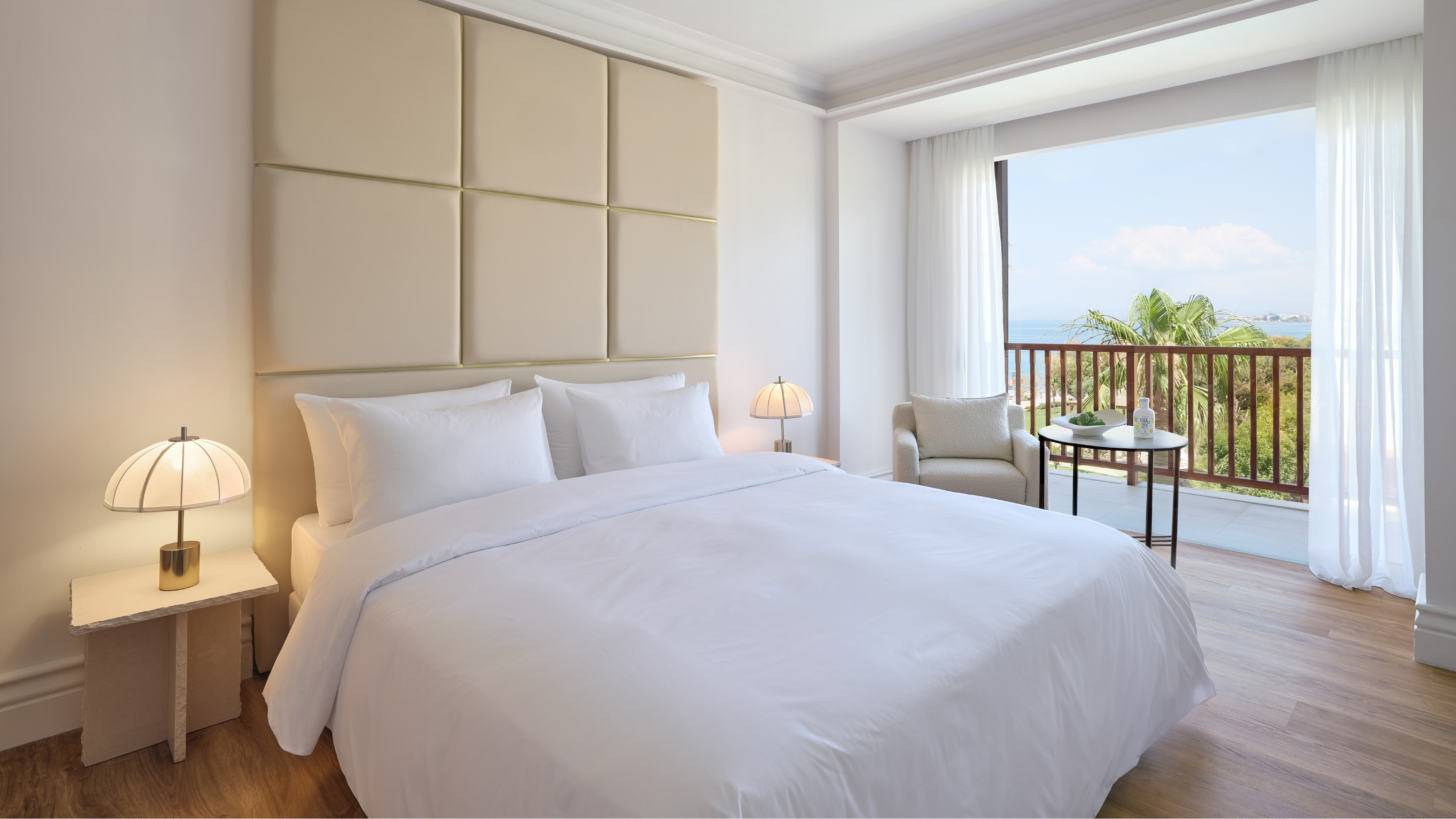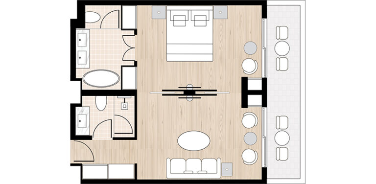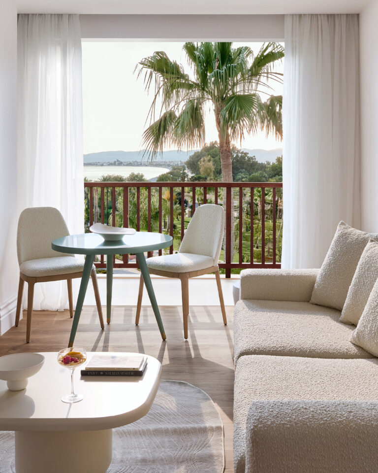 A spacious escape designed for those seeking comfort and enhanced privacy. This suite features a master bedroom and an elegant living area with soft, earthy tones, each with its own en-suite bathroom. Whether lounging indoors or enjoying the scenery from your private balcony, every moment echoes a soothing ambiance.