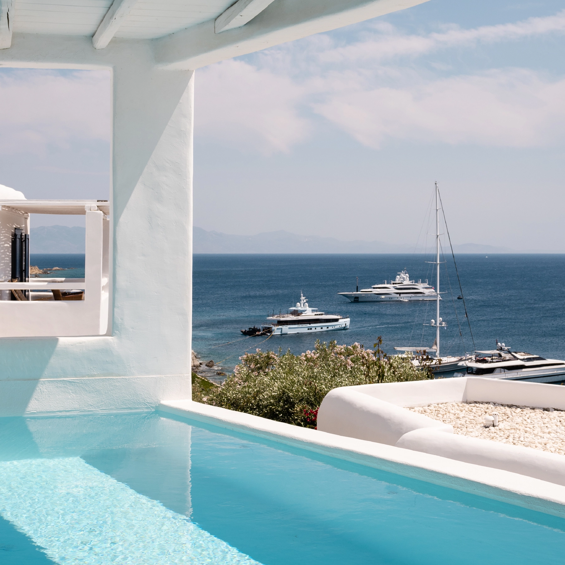 Expansive and cozy villas featuring private pools and stunning views of the Aegean Sea.