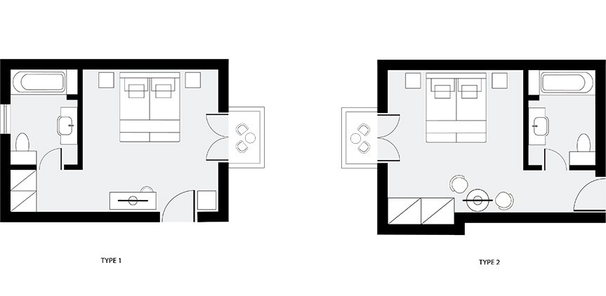 Ground floor bungalows have immediate access to the verdant gardens or pool, while first floor bungalows have a sweeping view of the hotel courtyard and pool.